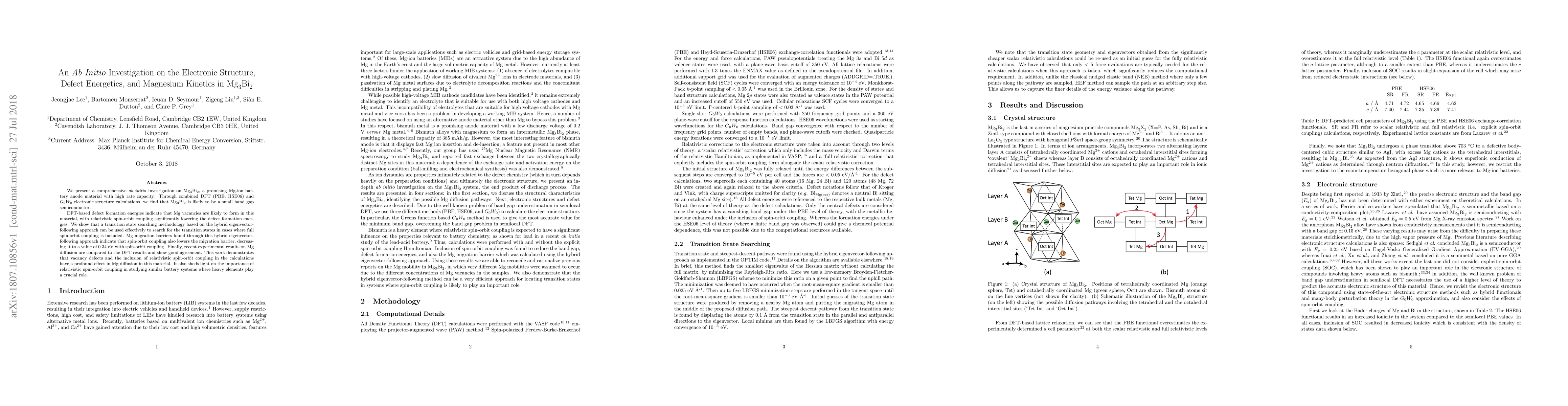 We present a comprehensive ab initio investigation on Mg$_3$Bi$_2$, a promising Mg-ion battery anode material with high rate capacity. Through combined DFT (PBE, HSE06) and $G_0W_0$ electronic structure calculations, we find that Mg$_3$Bi$_2$ is likely to be a small band gap semiconductor. DFT-based defect formation energies indicate that Mg vacancies are likely to form in this material, with relativistic spin-orbit coupling significantly lowering the defect formation energies. We show that a transition state searching methodology based on the hybrid eigenvector-following approach can be used effectively to search for the transition states in cases where full spin-orbit coupling is included. Mg migration barriers found through this hybrid eigenvector-following approach indicate that spin-orbit coupling also lowers the migration barrier, decreasing it to a value of 0.34 eV with spin-orbit coupling. Finally, recent experimental results on Mg diffusion are compared to the DFT results and show good agreement. This work demonstrates that vacancy defects and the inclusion of relativistic spin-orbit coupling in the calculations have a profound effect in Mg diffusion in this material. It also sheds light on the importance of relativistic spin-orbit coupling in studying similar battery systems where heavy elements play a crucial role.