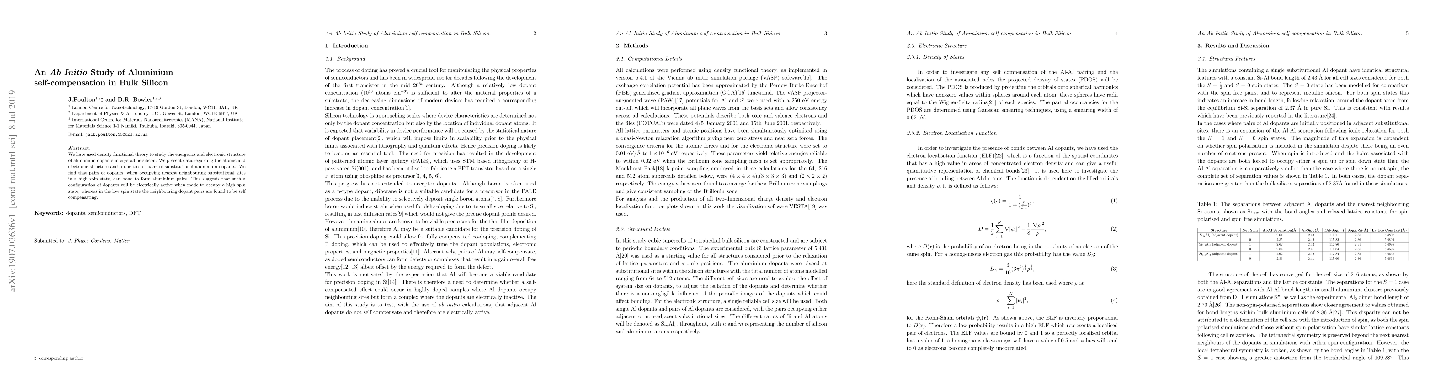 Researchers used density functional theory to study aluminium dopants in silicon, finding that pairs of dopants can form 'aluminium pairs' when in a high spin state, potentially leading to electrical activity.