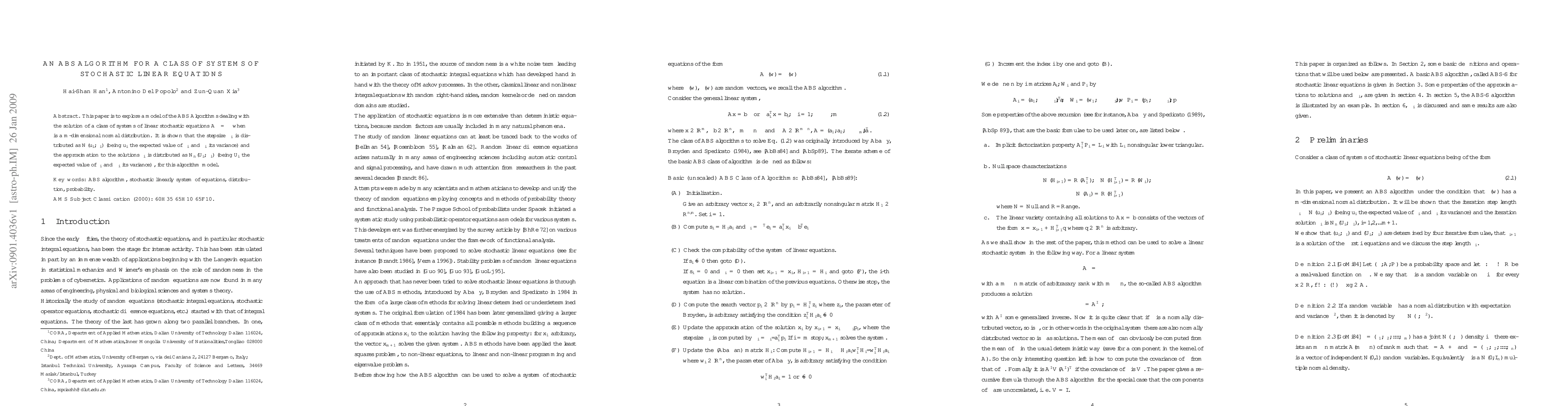 Researchers developed an algorithm to solve systems of stochastic linear equations, showing that solutions converge to normal distributions with specific means and variances.