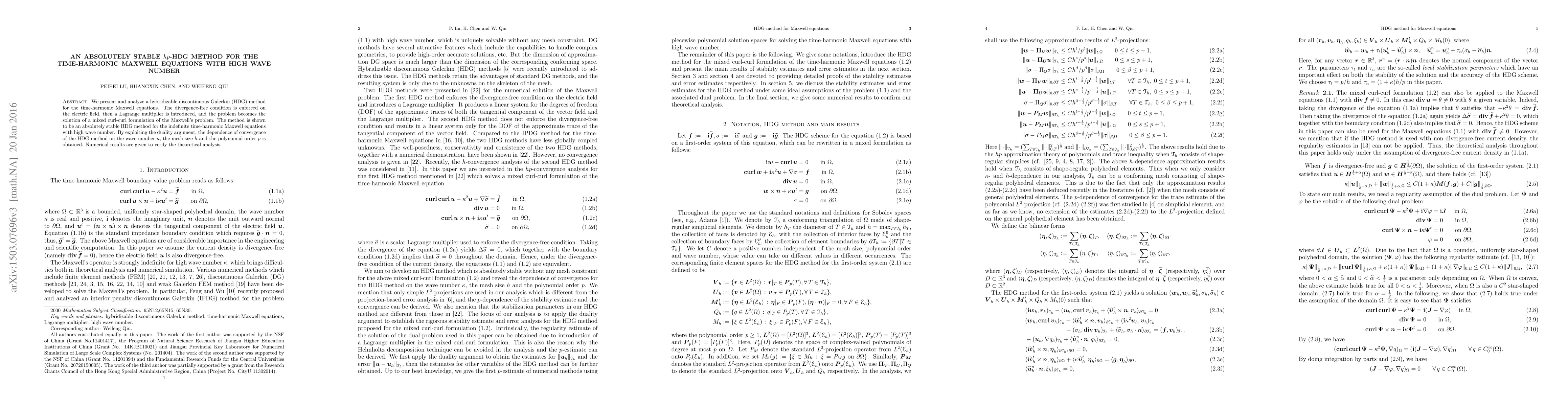 This paper introduces an absolutely stable hybridizable discontinuous Galerkin (HDG) method for solving the time-harmonic Maxwell equations, particularly for high wave numbers. The method enforces the divergence-free condition on the electric field and uses a Lagrange multiplier to achieve a mixed curl-curl formulation, ensuring stability and convergence regardless of the wave number.