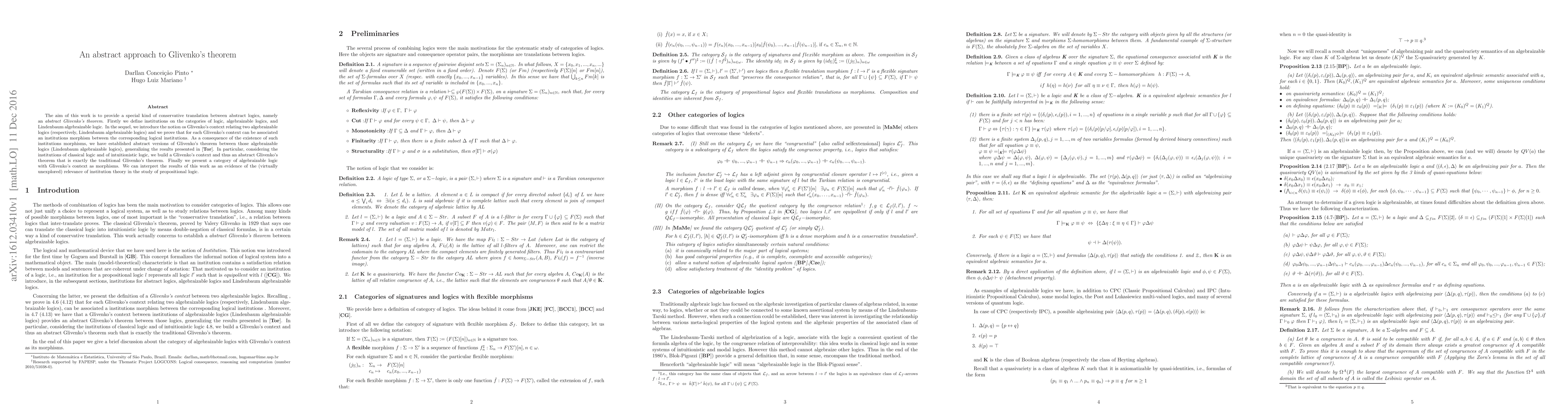 The aim of this work is to provide a special kind of conservative translation between abstract logics, namely an \textit{abstract Glivenko's theorem}. Firstly we define institutions on the categories of logic, algebraizable logics, and Lindenbaum algebraizable logic. In the sequel, we introduce the notion os Glivenko's context relating two algebraizable logics (respectively, Lindenbaum algebraizable logics) and we prove that for each Glivenko's context can be associated an institutions morphism between the corresponding logical institutions. As a consequence of the existence of such institutions morphisms, we have established abstract versions of Glivenko's theorem between those algebraizable logics (Lindenbaum algebraizable logics), generalizing the results presented in \cite{To}. In particular, considering the institutions of classical logic and of intuitionistic logic, we build a Glivenko's context and thus an abstract Glivenko's theorem that is exactly the traditional Glivenko's theorem. Finally we present a category of algebraizable logic with Glivenko's context as morphisms. We can interpret the results of this work as an evidence of the (virtually unexplored) relevance of institution theory in the study of propositional logic.