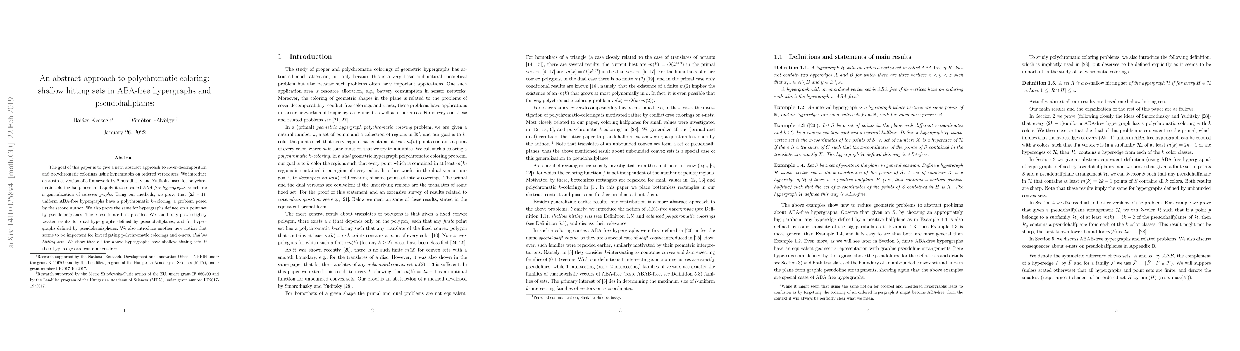 This paper presents an abstract method for polychromatic coloring using hypergraphs on ordered vertex sets, specifically focusing on ABA-free hypergraphs and pseudohalfplanes. It introduces shallow hitting sets and proves that (2k-1)-uniform ABA-free hypergraphs and pseudohalfplane hypergraphs have polychromatic k-colorings, with the results being best possible.