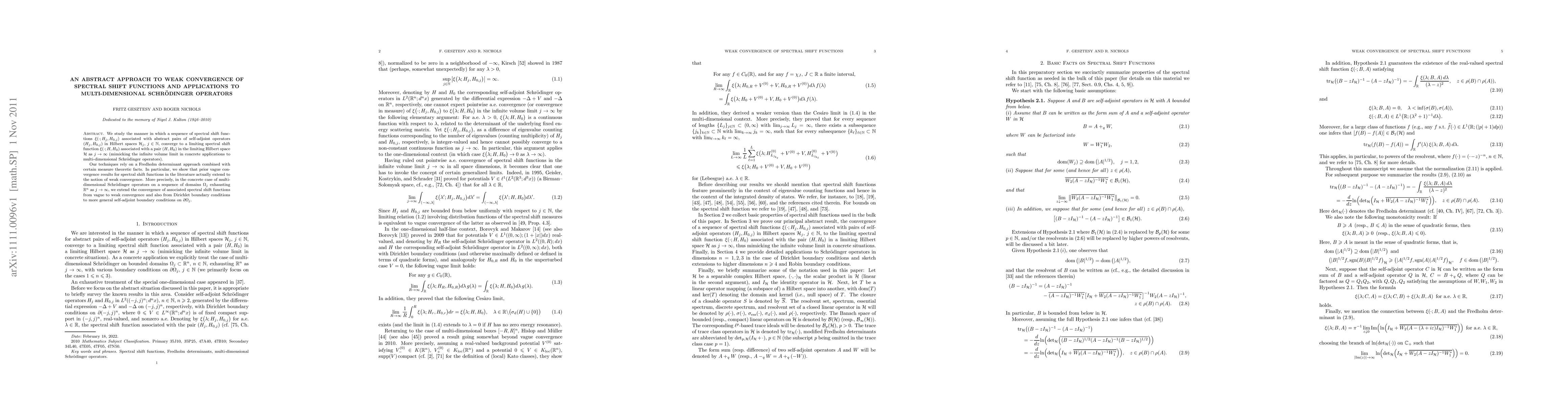This paper explores the weak convergence of spectral shift functions associated with pairs of self-adjoint operators in Hilbert spaces, extending previous vague convergence results. It applies these findings to multi-dimensional Schrödinger operators, improving convergence from vague to weak and broadening boundary conditions.
