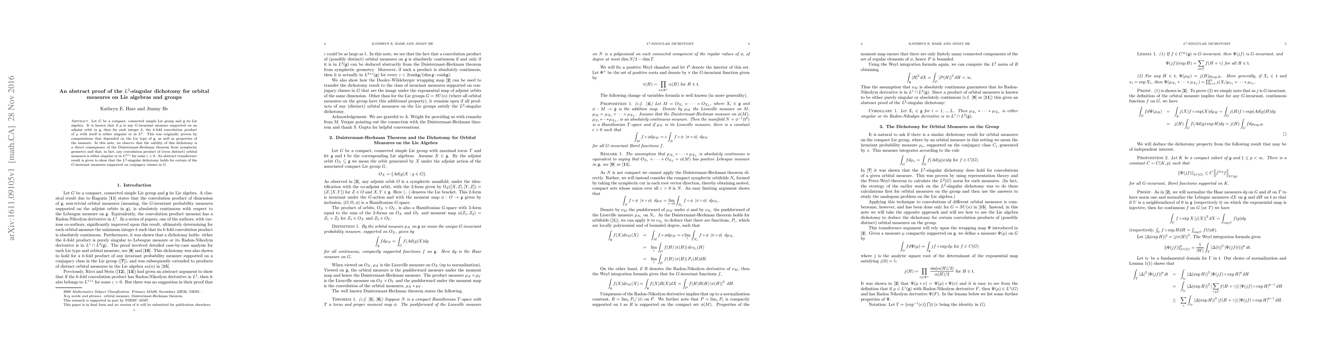 This paper demonstrates that the L2-singular dichotomy for $G$-invariant measures on compact, connected simple Lie groups $G$ and their Lie algebras $\mathfrak{g}$ follows directly from the Duistermaat-Heckman theorem in symplectic geometry, establishing that any convolution product of orbital measures is either singular or in $L^{2+\varepsilon}$ for some $\varepsilon >0$.