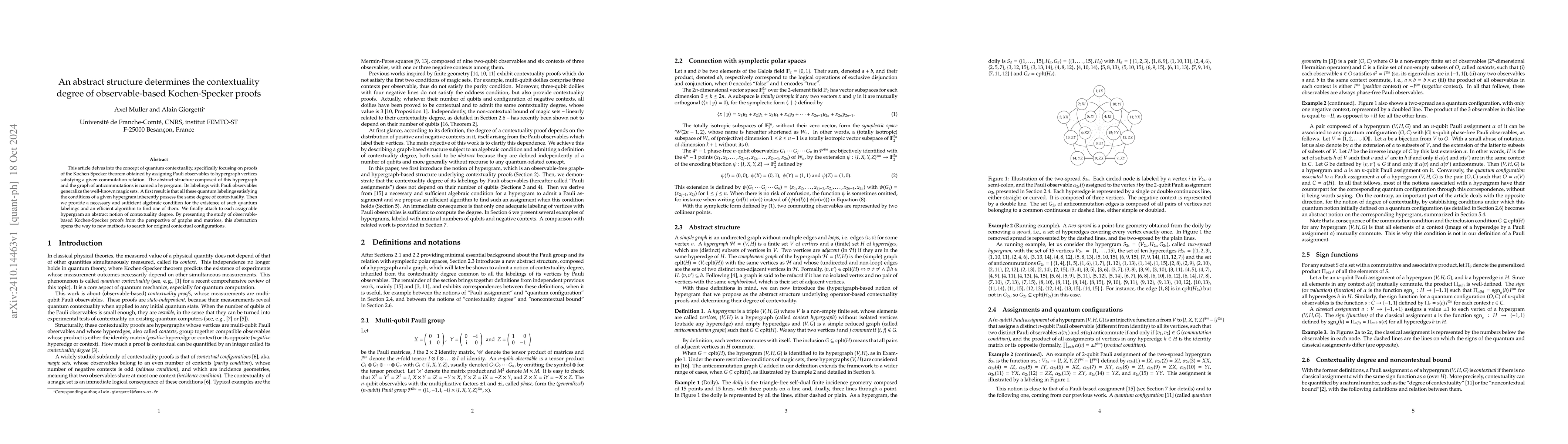This article delves into the concept of quantum contextuality, specifically focusing on proofs of the Kochen-Specker theorem obtained by assigning Pauli observables to hypergraph vertices satisfying a given commutation relation. The abstract structure composed of this hypergraph and the graph of anticommutations is named a hypergram. Its labelings with Pauli observables generalize the well-known magic sets. A first result is that all these quantum labelings satisfying the conditions of a given hypergram inherently possess the same degree of contextuality. Then we provide a necessary and sufficient algebraic condition for the existence of such quantum labelings and an efficient algorithm to find one of them. We finally attach to each assignable hypergram an abstract notion of contextuality degree. By presenting the study of observable-based Kochen-Specker proofs from the perspective of graphs and matrices, this abstraction opens the way to new methods to search for original contextual configurations.