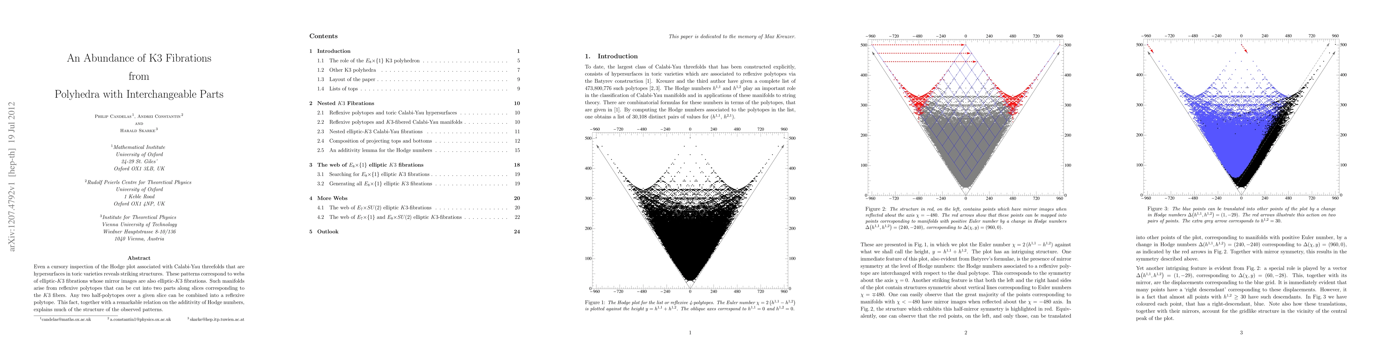 Even a cursory inspection of the Hodge plot associated with Calabi-Yau threefolds that are hypersurfaces in toric varieties reveals striking structures. These patterns correspond to webs of elliptic-K3 fibrations whose mirror images are also elliptic-K3 fibrations. Such manifolds arise from reflexive polytopes that can be cut into two parts along slices corresponding to the K3 fibers. Any two half-polytopes over a given slice can be combined into a reflexive polytope. This fact, together with a remarkable relation on the additivity of Hodge numbers, explains much of the structure of the observed patterns.