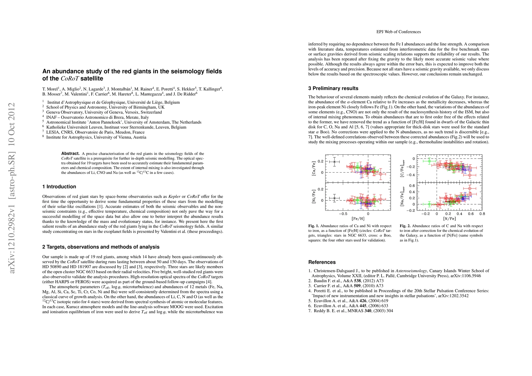 This study characterizes red giants in CoRoT satellite seismology fields using optical spectra to determine their fundamental parameters and chemical composition, with a focus on the extent of internal mixing via Li, CNO, and Na abundances.