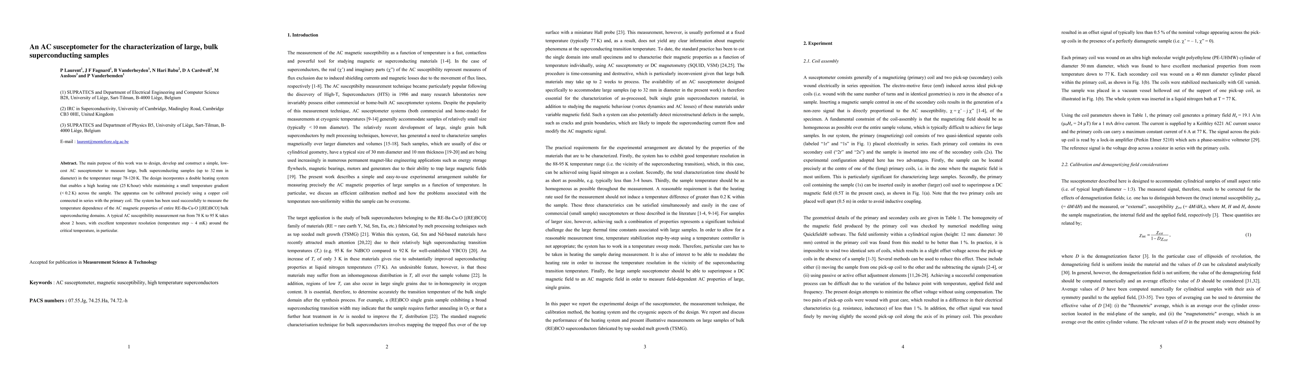 Researchers developed a low-cost AC susceptometer to measure large bulk superconducting samples with high precision, allowing for detailed analysis of their temperature dependence.