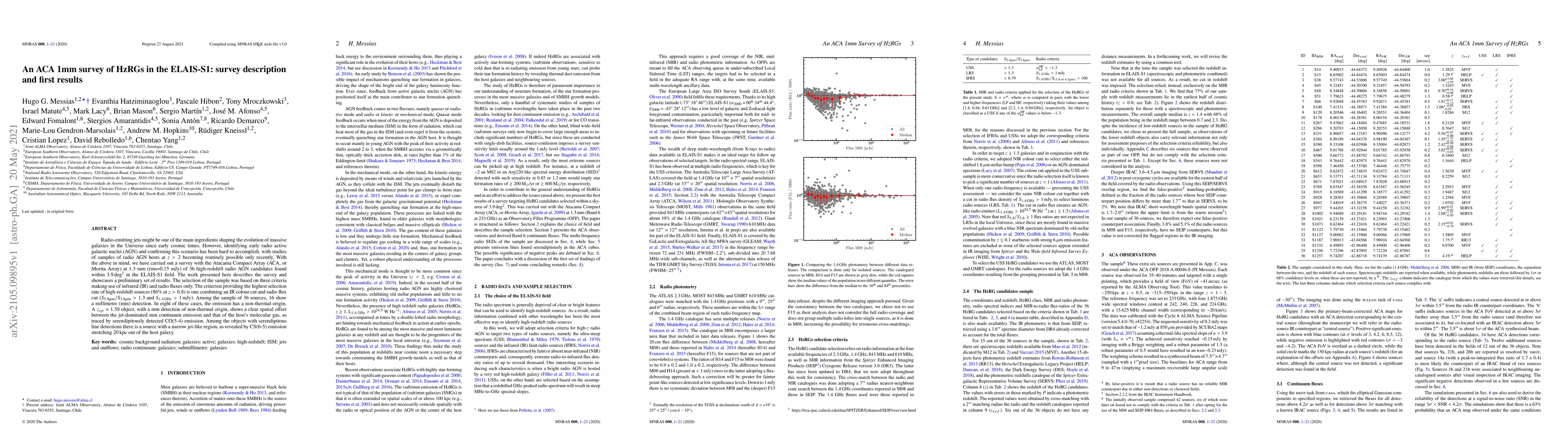 Radio-emitting jets might be one of the main ingredients shaping the evolution of massive galaxies in the Universe since early cosmic times. However, identifying early radio active galactic nuclei (AGN) and confirming this scenario has been hard to accomplish, with studies of samples of radio AGN hosts at z>2 becoming routinely possible only recently. With the above in mind, we have carried out a survey with the Atacama Compact Array (ACA, or Morita Array) at 1.3 mm (rms=0.15 mJy) of 36 high-redshift radio AGN candidates found within 3.9deg2 in the ELAIS-S1 field. The work presented here describes the survey and showcases a preliminary set of results. The selection of the sample was based on three criteria making use of infrared (IR) and radio fluxes only. The criterion providing the highest selection rate of high-redshift sources (86% at z>0.8) is one combining an IR colour cut and radio flux cut (S(5.8um)/S(3.6um)>1.3 and S(1.4GHz)>1mJy). Among the sample of 36 sources, 16 show a millimetre (mm) detection. In eight of these cases, the emission has a non-thermal origin. A zsp=1.58 object, with a mm detection of non-thermal origin, shows a clear spatial offset between the jet-dominated mm continuum emission and that of the host's molecular gas, as traced by serendipitously detected CO(5-4) emission. Among the objects with serendipitous line detections there is a source with a narrow jet-like region, as revealed by CS(6-5) emission stretching 20kpc out of the host galaxy.