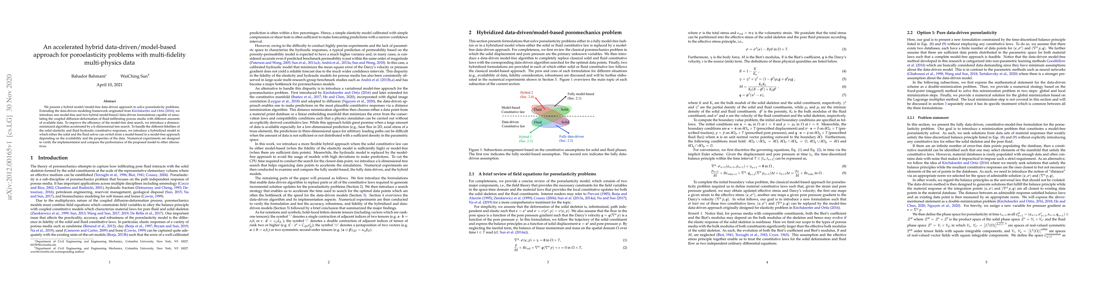 Researchers developed a hybrid approach to solve poroelasticity problems using data-driven and model-based methods, allowing for efficient simulation with varying levels of available data.
