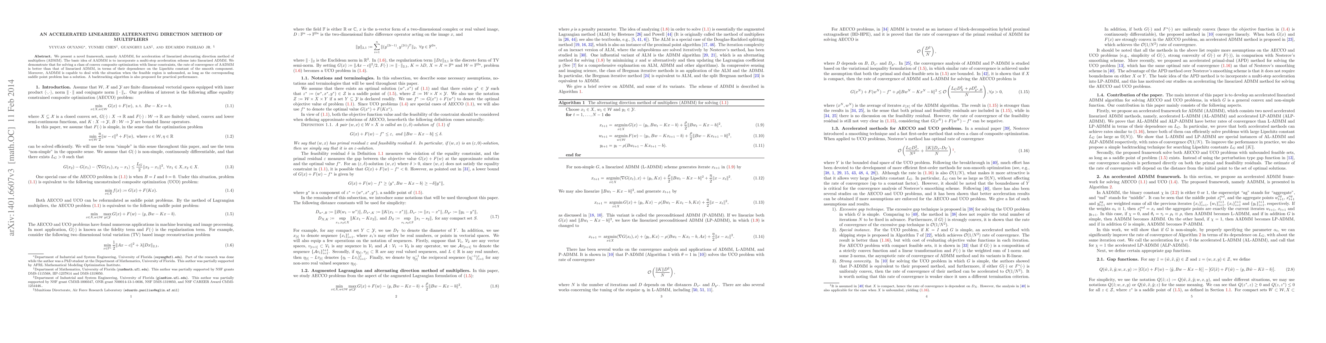The paper introduces AADMM, an accelerated version of linearized ADMM, which incorporates a multi-step acceleration scheme to improve convergence rates for solving convex composite optimization problems with linear constraints. AADMM also handles unbounded feasible regions and includes a backtracking algorithm for practical implementation.