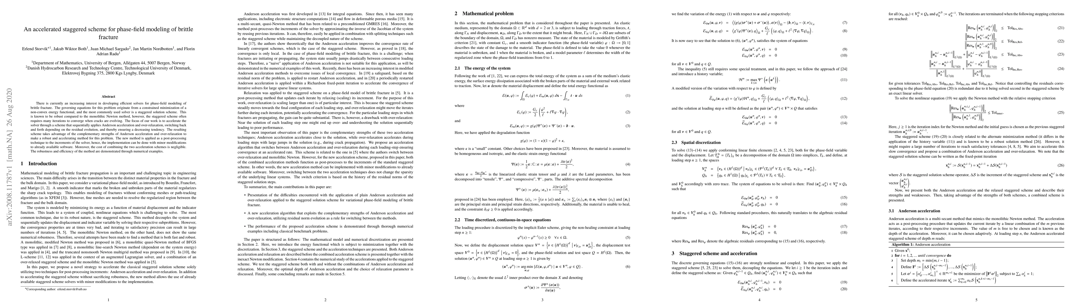 This paper presents an accelerated staggered scheme for phase-field modeling of brittle fracture, combining Anderson acceleration and over-relaxation to enhance convergence speed. The proposed method is implemented as a post-processing technique requiring minimal software modifications, demonstrating robustness and efficiency through numerical examples.