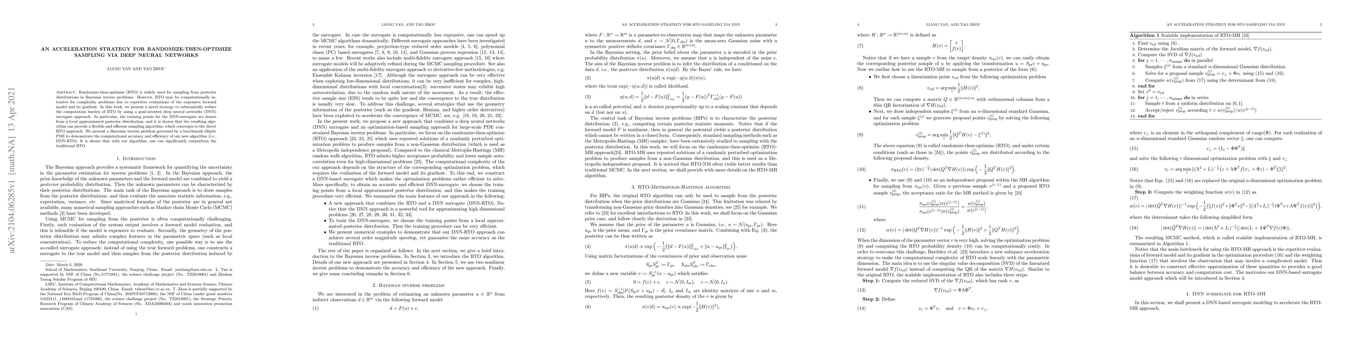 This paper proposes a novel deep neural network (DNN) surrogate approach to accelerate randomize-then-optimize (RTO) sampling in Bayesian inverse problems, significantly reducing computational costs by avoiding repetitive evaluations of the forward model. The DNN-RTO method demonstrates improved efficiency and accuracy compared to traditional RTO, as demonstrated through a benchmark elliptic PDE problem.