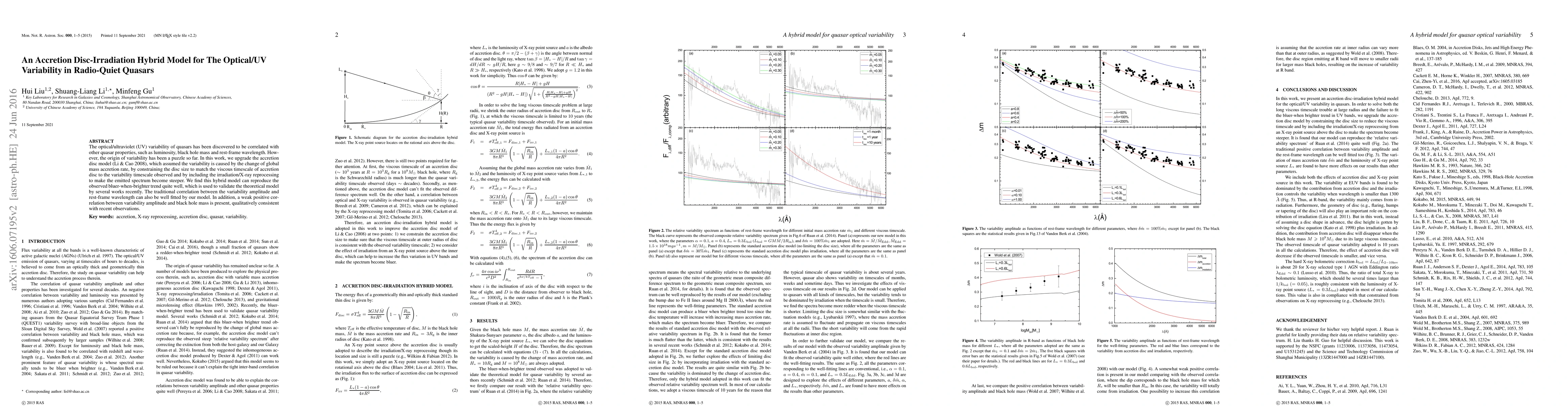 This paper proposes a hybrid accretion disc-irradiation model to explain the optical/UV variability in radio-quiet quasars, incorporating the viscous timescale and X-ray reprocessing. This model successfully reproduces the observed bluer-when-brighter trend and fits the correlation between variability amplitude and rest-frame wavelength.