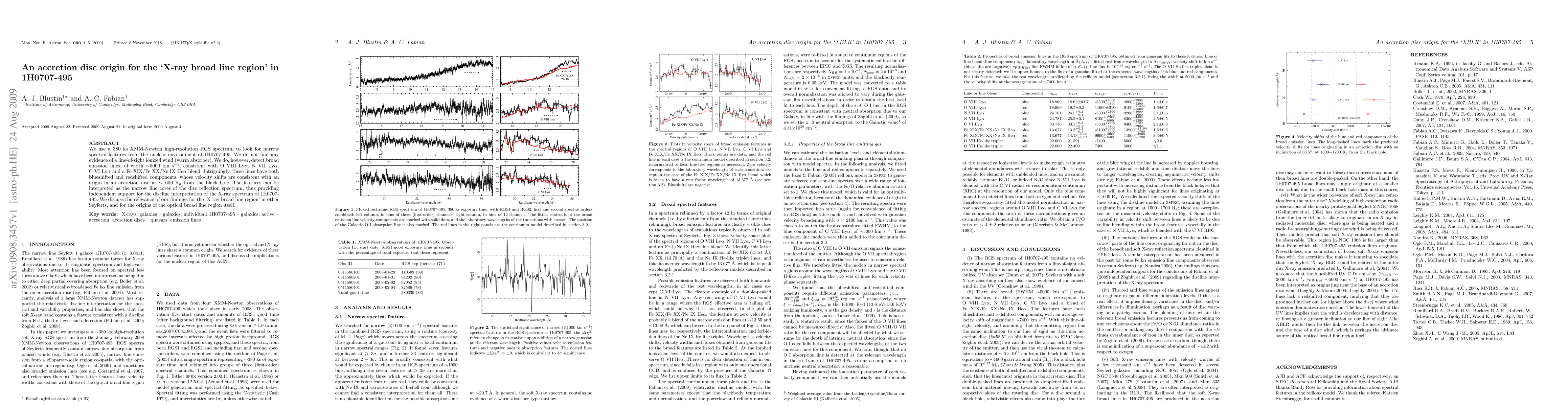 Researchers found broad emission lines in 1H0707-495's X-ray spectrum that match accretion disc features, supporting the 'discline' interpretation of black hole spectra. These findings imply an accretion disc origin for the 'X-ray broad line region'.