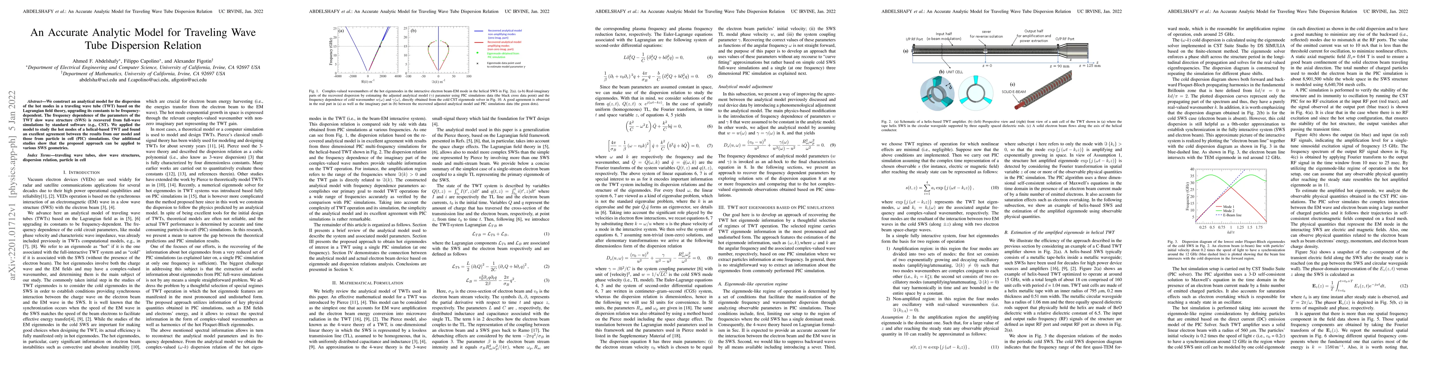 Abstract -- We construct an analytical model for the dispersion of the hot modes in a traveling wave tube (TWT) based on the Lagrangian field theory, upgrading its constants to be frequency-dependent. The frequency dependence of the parameters of the TWT slow wave structure (SWS) is recovered from full-wave simulations by standard software (e.g., CST). We applied the model to study the hot modes of a helical-based TWT and found an excellent agreement between the results from our model and those from particle in cell (PIC) simulations. Our additional studies show that the proposed approach can be applied to various SWS geometries.