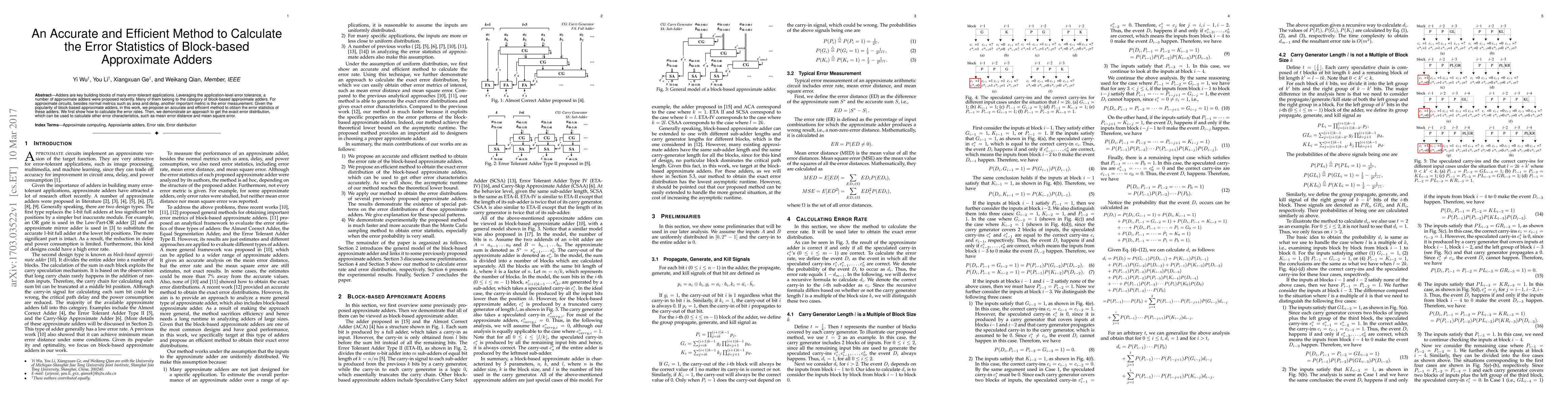 The paper presents a novel recursive method for calculating error statistics of block-based approximate adders, including error rates and distributions, with a time complexity analysis.