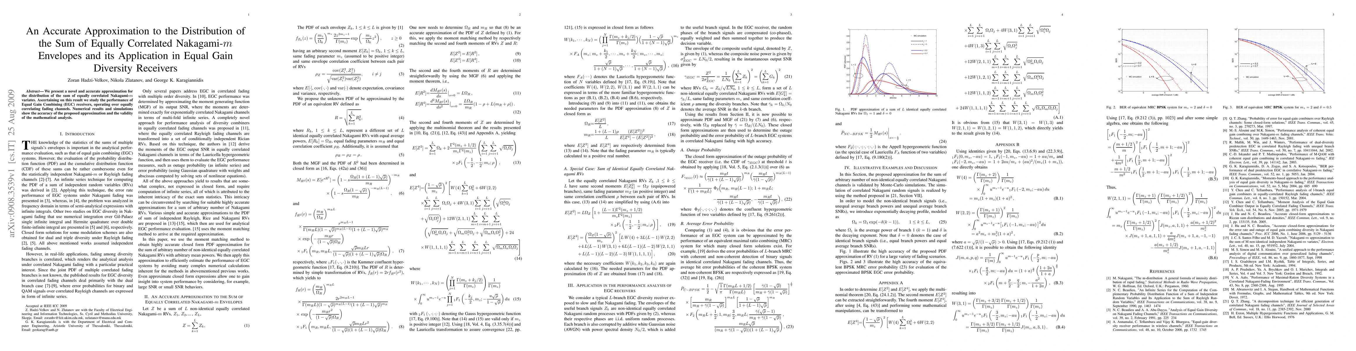 We present a novel and accurate approximation for the distribution of the sum of equally correlated Nakagami-m variates. Ascertaining on this result we study the performance of Equal Gain Combining (EGC) receivers, operating over equally correlating fading channels. Numerical results and simulations show the accuracy of the proposed approximation and the validity of the mathematical analysis.