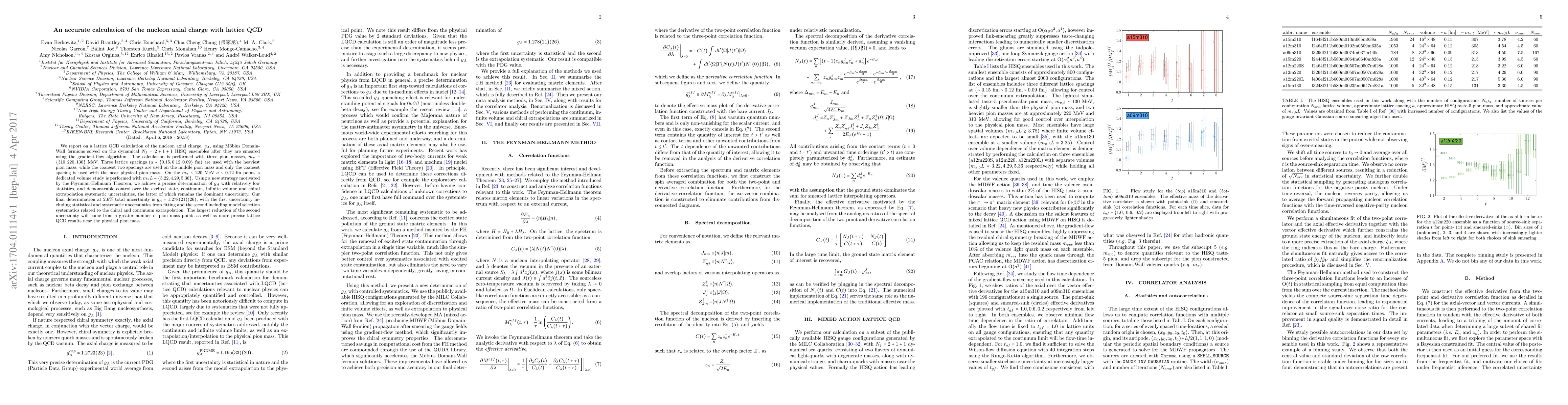 We report on a lattice QCD calculation of the nucleon axial charge, $g_A$, using M\"{o}bius Domain-Wall fermions solved on the dynamical $N_f=2+1+1$ HISQ ensembles after they are smeared using the gradient-flow algorithm. The calculation is performed with three pion masses, $m_\pi\sim\{310,220,130\}$ MeV. Three lattice spacings ($a\sim\{0.15,0.12,0.09\}$ fm) are used with the heaviest pion mass, while the coarsest two spacings are used on the middle pion mass and only the coarsest spacing is used with the near physical pion mass. On the $m_\pi\sim220$ MeV, $a\sim0.12$ fm point, a dedicated volume study is performed with $m_\pi L \sim \{3.22,4.29,5.36\}$. Using a new strategy motivated by the Feynman-Hellmann Theorem, we achieve a precise determination of $g_A$ with relatively low statistics, and demonstrable control over the excited state, continuum, infinite volume and chiral extrapolation systematic uncertainties, the latter of which remains the dominant uncertainty. Our final determination at 2.6\% total uncertainty is $g_A = 1.278(21)(26)$, with the first uncertainty including statistical and systematic uncertainties from fitting and the second including model selection systematics related to the chiral and continuum extrapolation. The largest reduction of the second uncertainty will come from a greater number of pion mass points as well as more precise lattice QCD results near the physical pion mass.