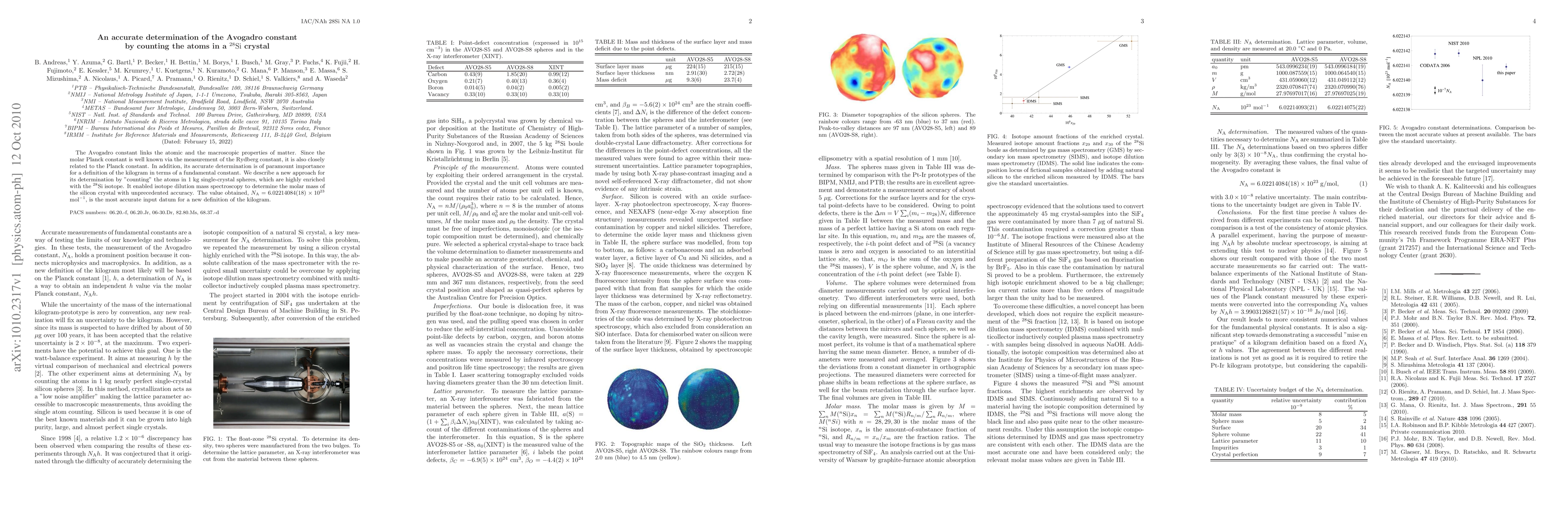 This paper presents a highly accurate determination of the Avogadro constant by counting atoms in 28Si crystals, using isotope dilution mass spectroscopy. The obtained value, 6.02214084(18) x 10^23 mol^-1, significantly enhances the precision needed for redefining the kilogram based on fundamental constants.