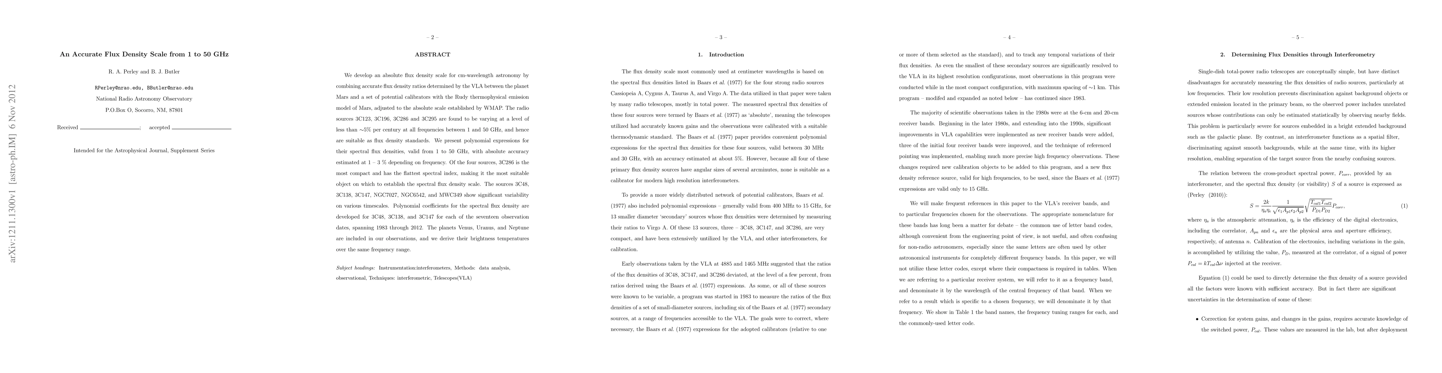 We develop an absolute flux density scale for cm-wavelength astronomy by combining accurate flux density ratios determined by the VLA between the planet Mars and a set of potential calibrators with the Rudy thermophysical emission model of Mars, adjusted to the absolute scale established by WMAP. The radio sources 3C123, 3C196, 3C286 and 3C295 are found to be varying at a level of less than ~5% per century at all frequencies between 1 and 50 GHz, and hence are suitable as flux density standards. We present polynomial expressions for their spectral flux densities, valid from 1 to 50 GHz, with absolute accuracy estimated at 1-3% depending on frequency. Of the four sources, 3C286 is the most compact and has the flattest spectral index, making it the most suitable object on which to establish the spectral flux density scale. The sources 3C48, 3C138, 3C147, NGC7027, NGC6542, and MWC349 show significant variability on various timescales. Polynomial coefficients for the spectral flux density are developed for 3C48, 3C138, and 3C147 for each of the seventeen observation dates, spanning 1983 through 2012. The planets Venus, Uranus, and Neptune are included in our observations, and we derive their brightness temperatures over the same frequency range.