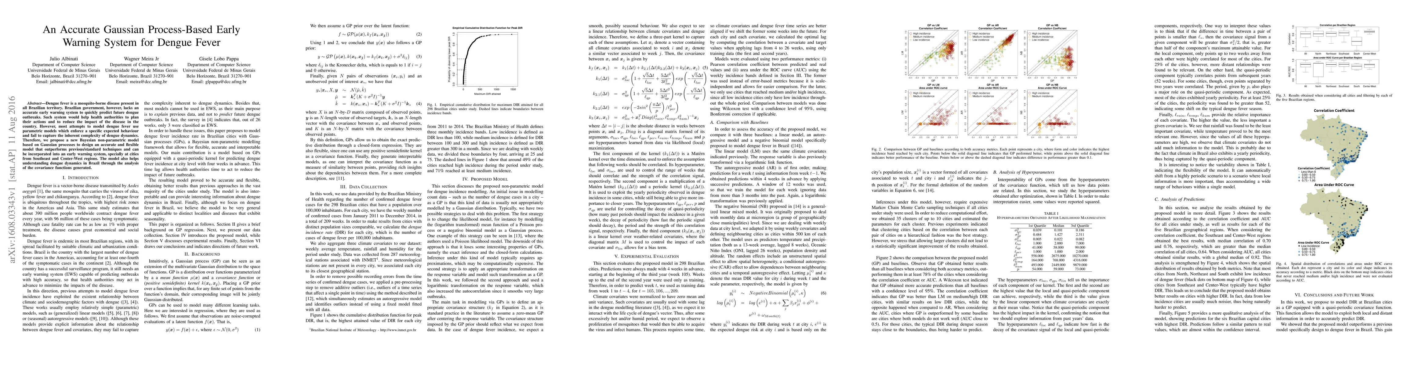 This paper proposes a Gaussian process-based Bayesian non-parametric model to create an accurate early warning system for dengue fever in Brazil, outperforming traditional parametric models. The model is designed to capture the complex dynamics of dengue outbreaks and is particularly effective for cities in the Southeast and Center-West regions.