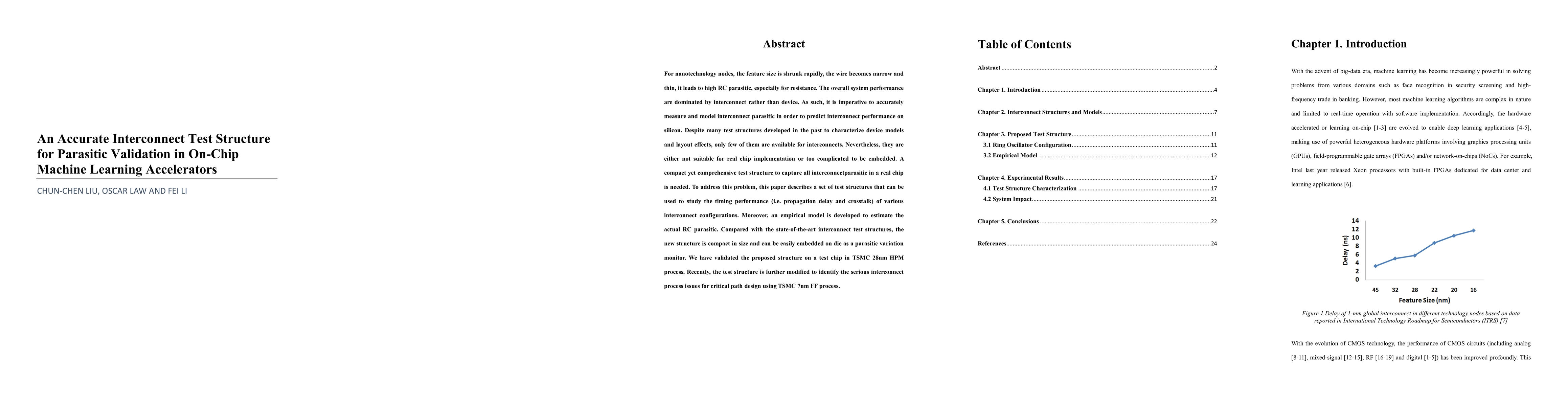 This paper proposes a compact test structure for accurately measuring interconnect parasitic effects in on-chip machine learning accelerators, focusing on RC parasitics. The new structure is validated in TSMC 28nm and 7nm processes, offering a practical solution for timing performance analysis and parasitic monitoring.
