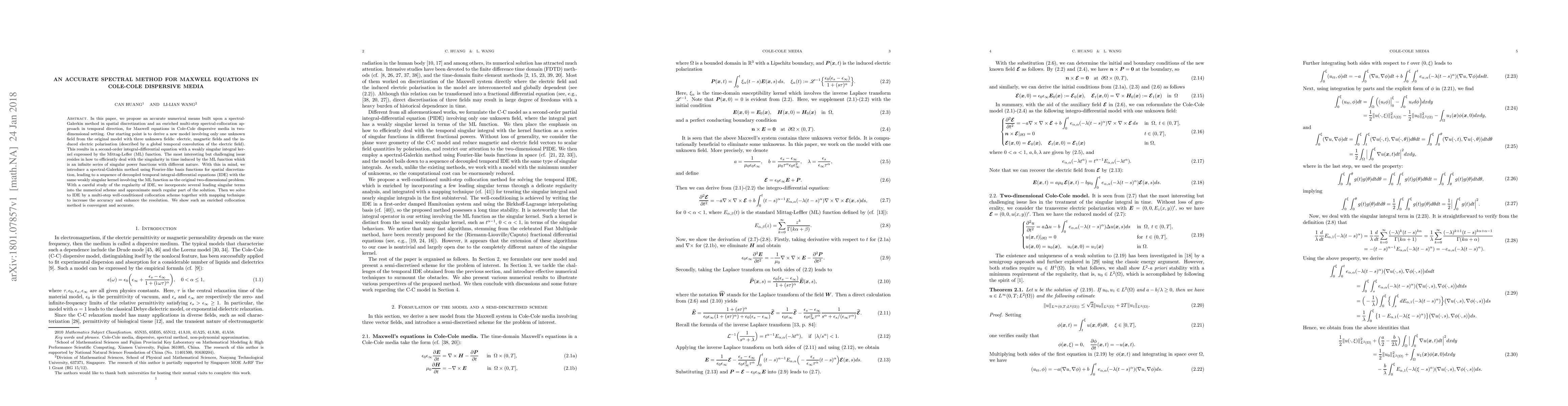 A new numerical method is proposed for solving Maxwell equations in Cole-Cole dispersive media, using a spectral-Galerkin method with an enriched multi-step collocation approach to accurately deal with the singular kernel of the integral-differential equation.