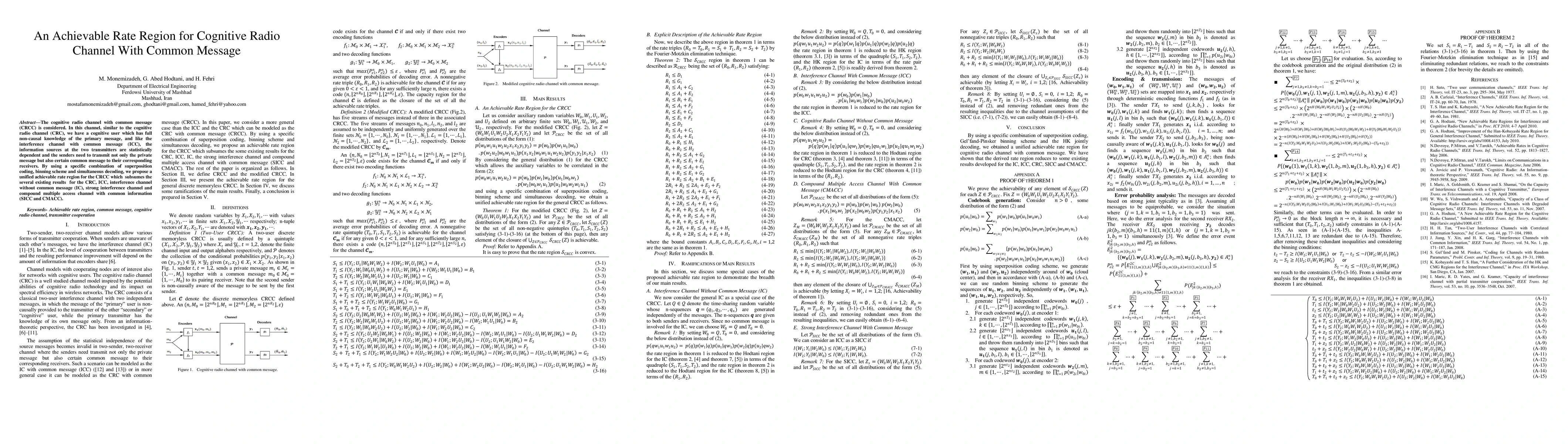This paper proposes a unified achievable rate region for the cognitive radio channel with common message (CRCC), combining superposition coding, binning, and simultaneous decoding. The proposed method generalizes existing results for various related channels, including the cognitive radio channel, interference channel, and multiple access channels.
