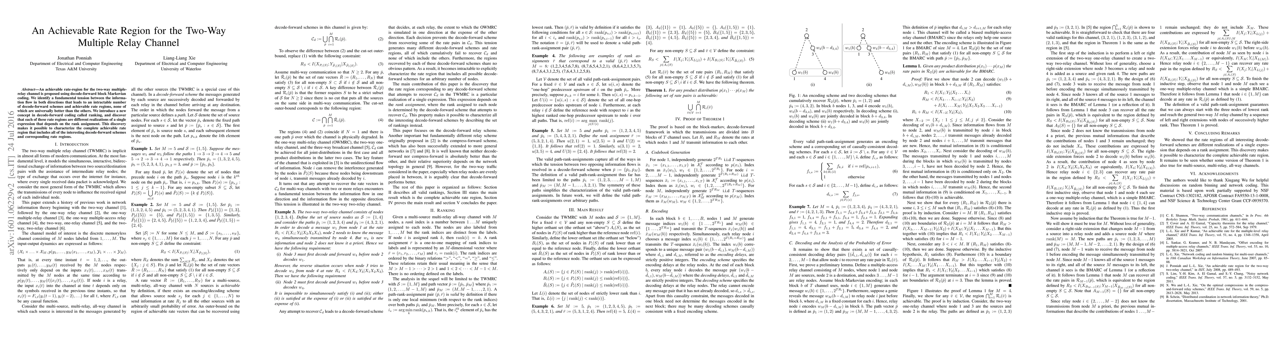 This paper proposes an achievable rate-region for the two-way multiple-relay channel using decode-and-forward coding, identifying a conflict in information flow that complicates scheme selection. It introduces a new concept called ranking to characterize the complete achievable rate region, extending existing results for one- and two-relay channels.