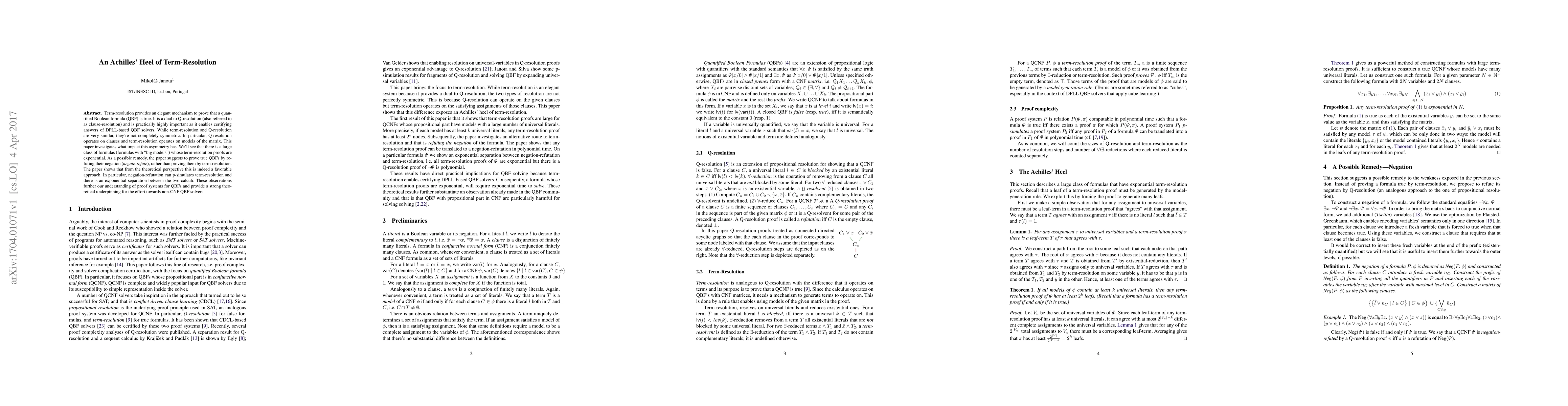 Term-resolution provides an elegant mechanism to prove that a quantified Boolean formula (QBF) is true. It is a dual to Q-resolution (also referred to as clause-resolution) and is practically highly important as it enables certifying answers of DPLL-based QBF solvers. While term-resolution and Q-resolution are very similar, they're not completely symmetric. In particular, Q-resolution operates on clauses and term-resolution operates on models of the matrix. This paper investigates what impact this asymmetry has. We'll see that there is a large class of formulas (formulas with "big models") whose term-resolution proofs are exponential. As a possible remedy, the paper suggests to prove true QBFs by refuting their negation ({\em negate-refute}), rather than proving them by term-resolution. The paper shows that from the theoretical perspective this is indeed a favorable approach. In particular, negation-refutation can p-simulates term-resolution and there is an exponential separation between the two calculi. These observations further our understanding of proof systems for QBFs and provide a strong theoretical underpinning for the effort towards non-CNF QBF solvers.