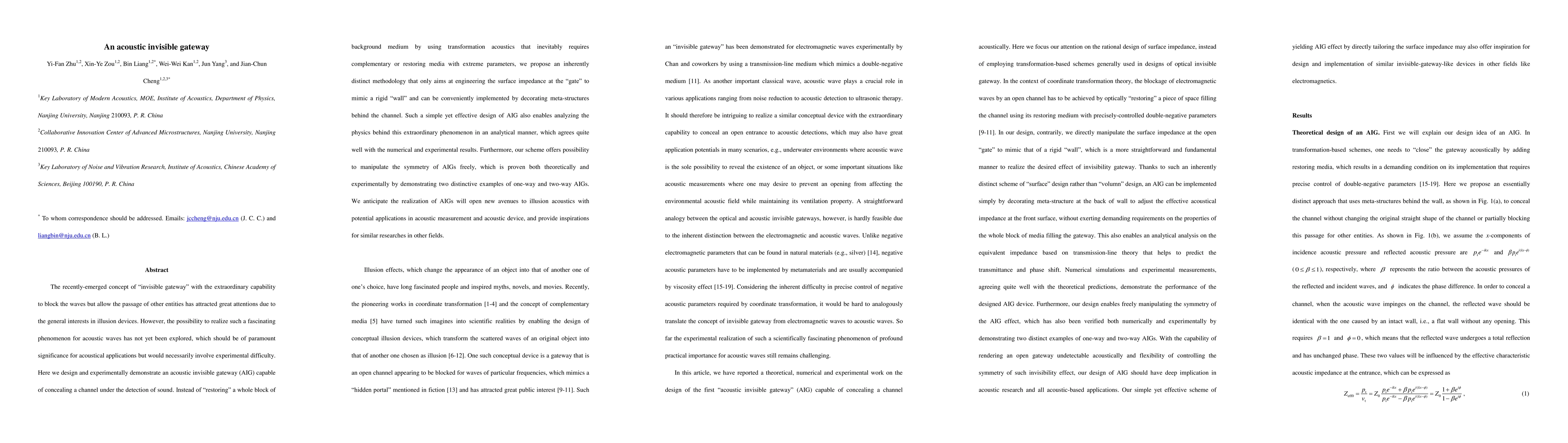 The recently-emerged concept of "invisible gateway" with the extraordinary capability to block the waves but allow the passage of other entities has attracted great attentions due to the general interests in illusion devices. However, the possibility to realize such a fascinating phenomenon for acoustic waves has not yet been explored, which should be of paramount significance for acoustical applications but would necessarily involve experimental difficulty. Here we design and experimentally demonstrate an acoustic invisible gateway (AIG) capable of concealing a channel under the detection of sound. Instead of "restoring" a whole block of background medium by using transformation acoustics that inevitably requires complementary or restoring media with extreme parameters, we propose an inherently distinct methodology that only aims at engineering the surface impedance at the "gate" to mimic a rigid "wall" and can be conveniently implemented by decorating meta-structures behind the channel. Such a simple yet effective design of AIG also enables analyzing the physics behind this extraordinary phenomenon in an analytical manner, which agrees quite well with the numerical and experimental results. Furthermore, our scheme offers possibility to manipulate the symmetry of AIGs freely, which is proven both theoretically and experimentally by demonstrating two distinctive examples of one-way and two-way AIGs. We anticipate the realization of AIGs will open new avenues to illusion acoustics with potential applications in acoustic measurement and acoustic device, and provide inspirations for similar researches in other fields.
