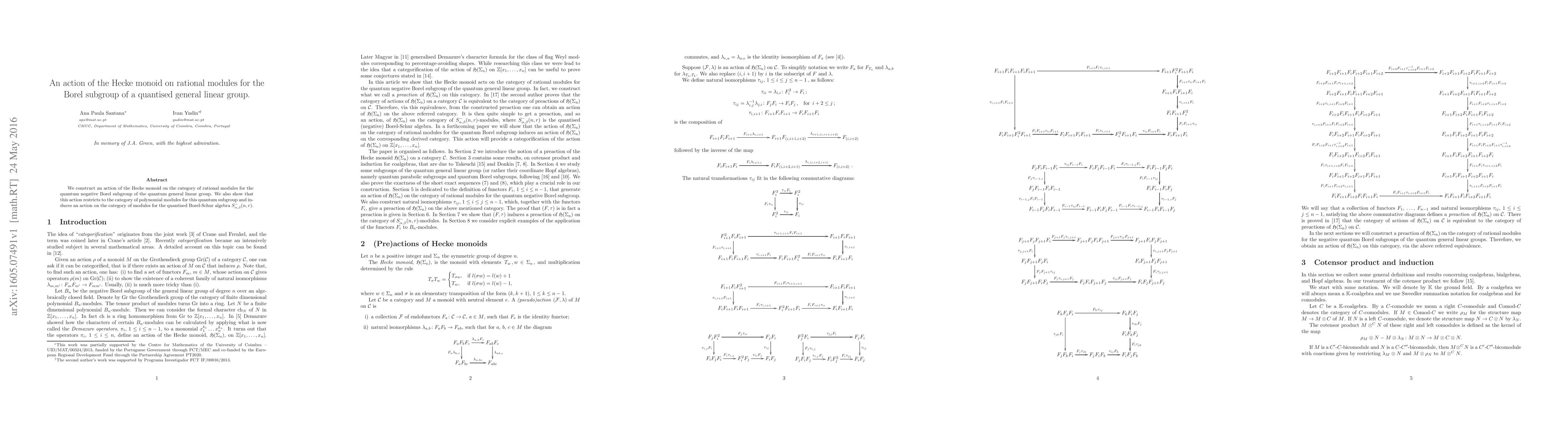 We construct an action of the Hecke monoid on the category of rational modules for the quantum negative Borel subgroup of the quantum general linear group. We also show that this action restricts to the category of polynomial modules for this quantum subgroup and induces an action on the category of modules for quantised Borel-Schur algebras.