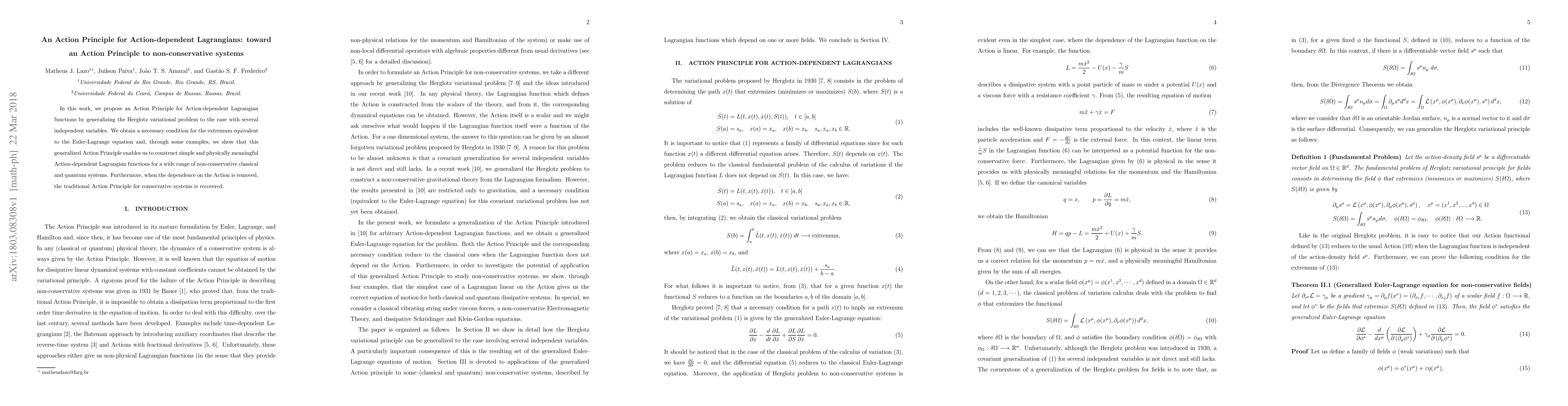 This paper proposes an Action Principle for Action-dependent Lagrangian functions, generalizing the Herglotz variational problem. The new principle allows the construction of Lagrangians for non-conservative systems, while reverting to traditional principles for conservative systems when Action dependence is removed.
