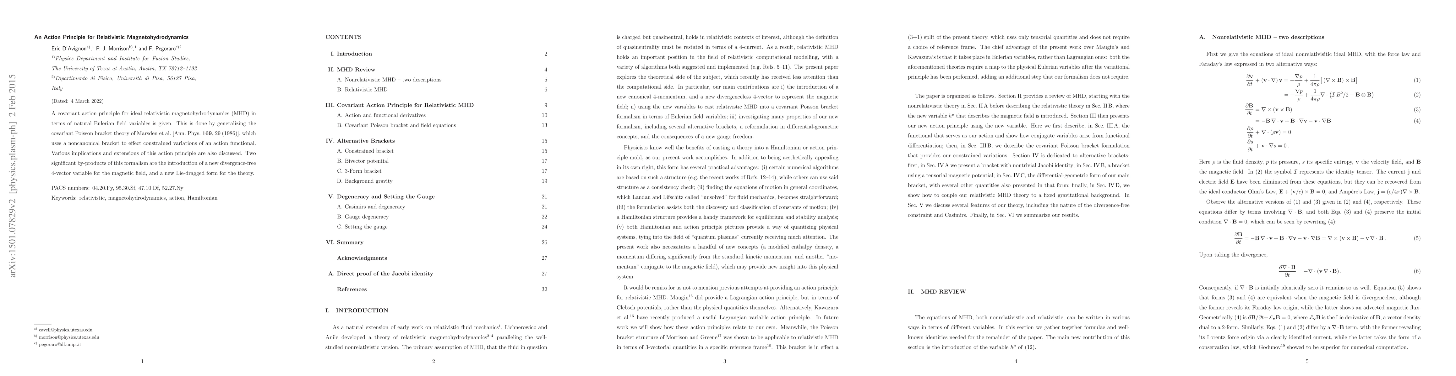 Researchers develop a new action principle for relativistic magnetohydrodynamics, introducing a new divergence-free 4-vector variable for the magnetic field and a Lie-dragged form for the theory.