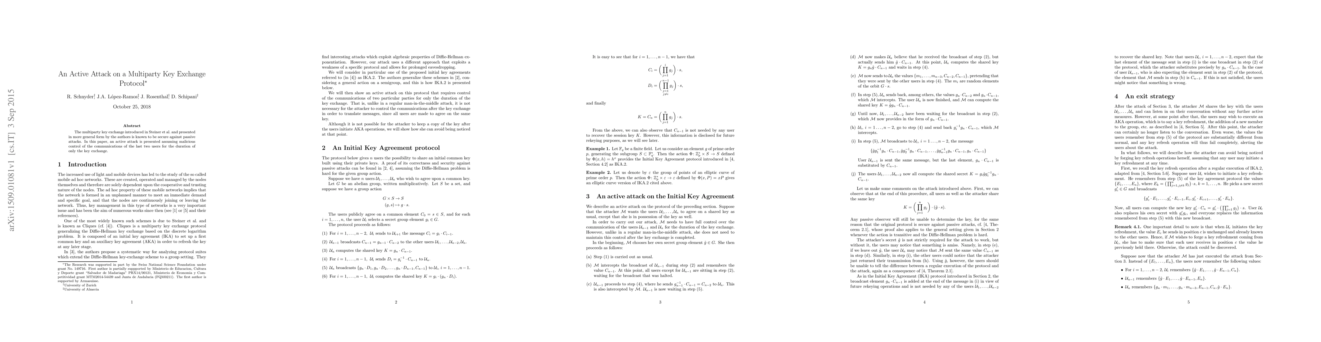 The multiparty key exchange introduced in Steiner et al.\@ and presented in more general form by the authors is known to be secure against passive attacks. In this paper, an active attack is presented assuming malicious control of the communications of the last two users for the duration of only the key exchange.