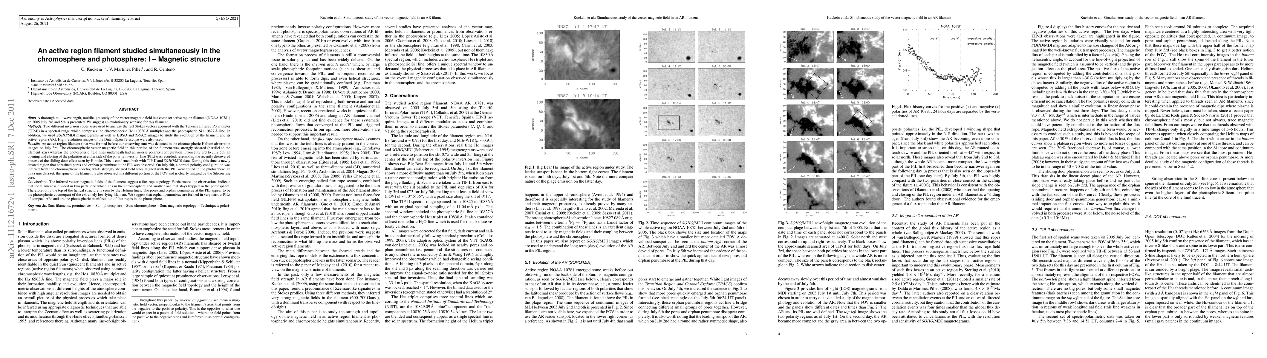 This study investigates the magnetic structure of an active region filament (NOAA10781) using multiwavelength observations in the chromosphere and photosphere. The filament shows a sheared chromospheric magnetic field and an inverse polarity configuration in the photosphere, suggesting a flux rope topology.