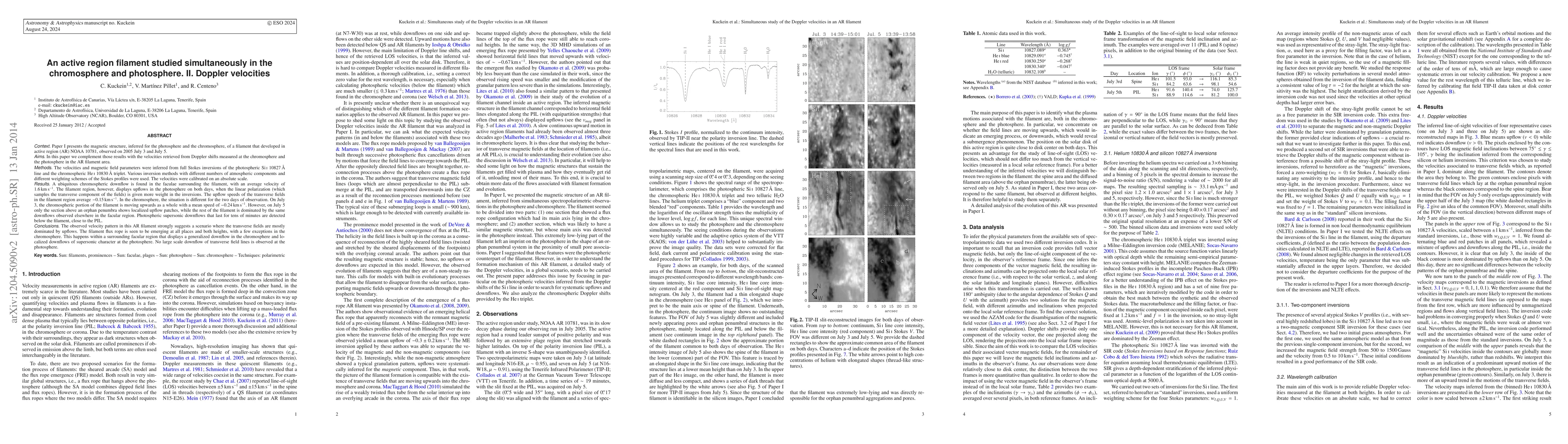 This paper investigates Doppler velocities in an active region filament, revealing chromospheric downflows in faculae and photospheric upflows in the filament region. The study finds that the filament flux rope emerges with upflows, while surrounding faculae exhibit generalized chromospheric downflows and localized supersonic downflows at the photosphere.