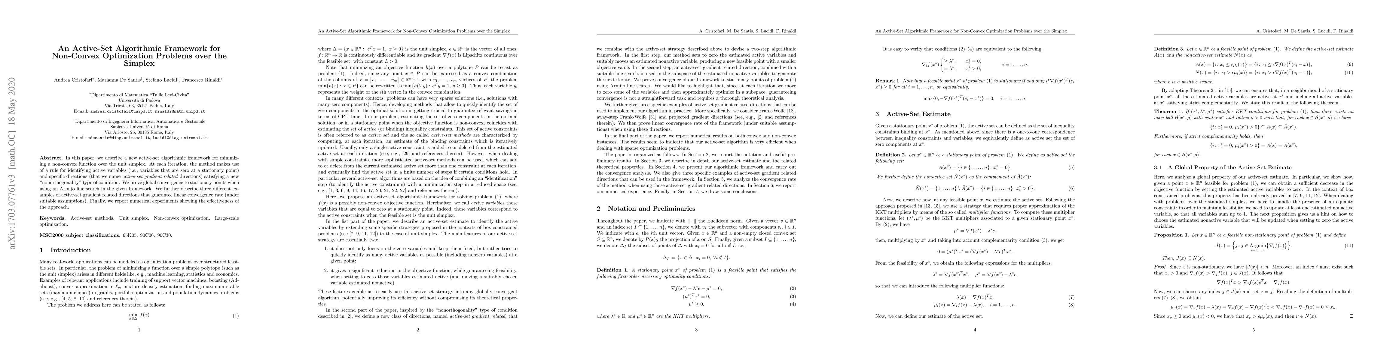 This paper presents a novel active-set algorithmic framework for minimizing non-convex functions over the unit simplex. It introduces a rule for identifying zero-valued variables and specific directions, ensuring global convergence to stationary points with an Armijo line search. The method guarantees linear convergence using three examples of active-set gradient related directions, supported by numerical experiments demonstrating its effectiveness.