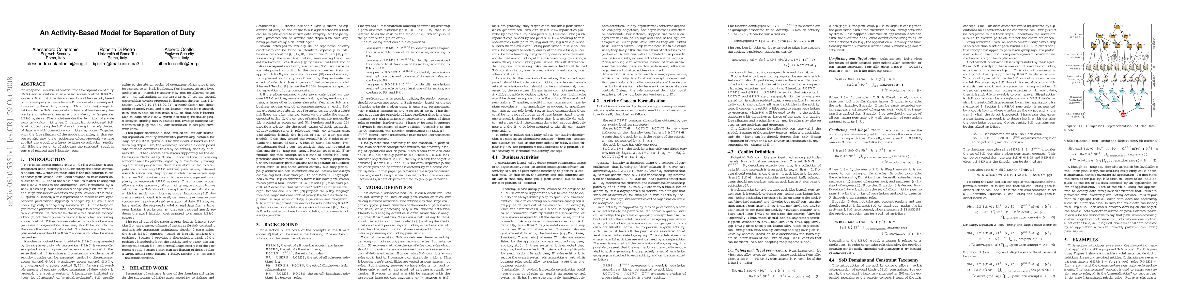 This paper offers several contributions for separation of duty (SoD) administration in role-based access control (RBAC) systems. We first introduce a new formal framework, based on business perspective, where SoD constraints are analyzed introducing the activity concept. This notion helps organizations define SoD constraints in terms of business requirements and reduces management complexity in large-scale RBAC systems. The model enables the definition of a wide taxonomy of conflict types. In particular, object-based SoD is introduced using the SoD domain concept, namely the set of data in which transaction conflicts may occur. Together with the formalization of the above properties, in this paper we also show the effectiveness of our proposal: we have applied the model to a large, existing organization; results highlight the benefits of adopting the proposed model in terms of reduced administration cost.