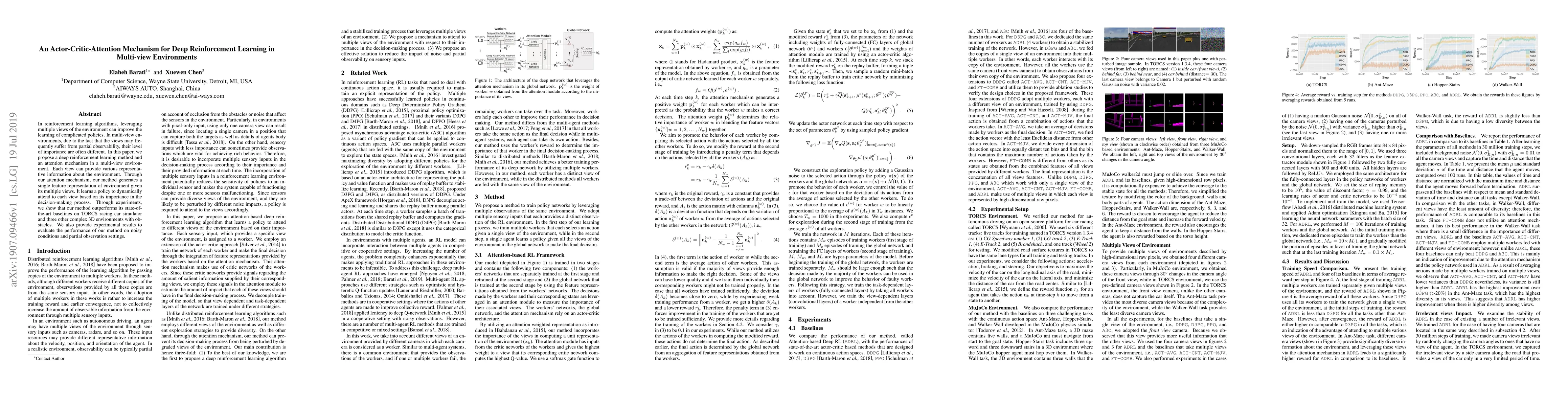 This paper proposes an actor-critic deep reinforcement learning method with an attention mechanism for multi-view environments, where different views have varying importance. The method dynamically prioritizes views based on their relevance, leading to improved performance in complex 3D environments. Experimental results demonstrate superior performance over baselines in various conditions.