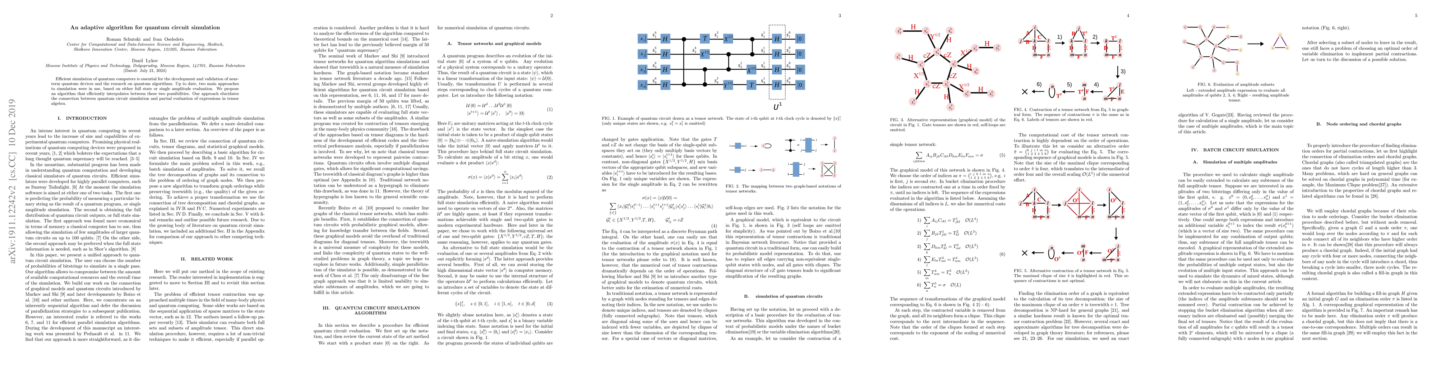 This paper introduces an adaptive algorithm for simulating quantum circuits, interpolating between full state and single amplitude evaluation methods, leveraging tensor algebra for efficient partial expression evaluation in quantum computing research.