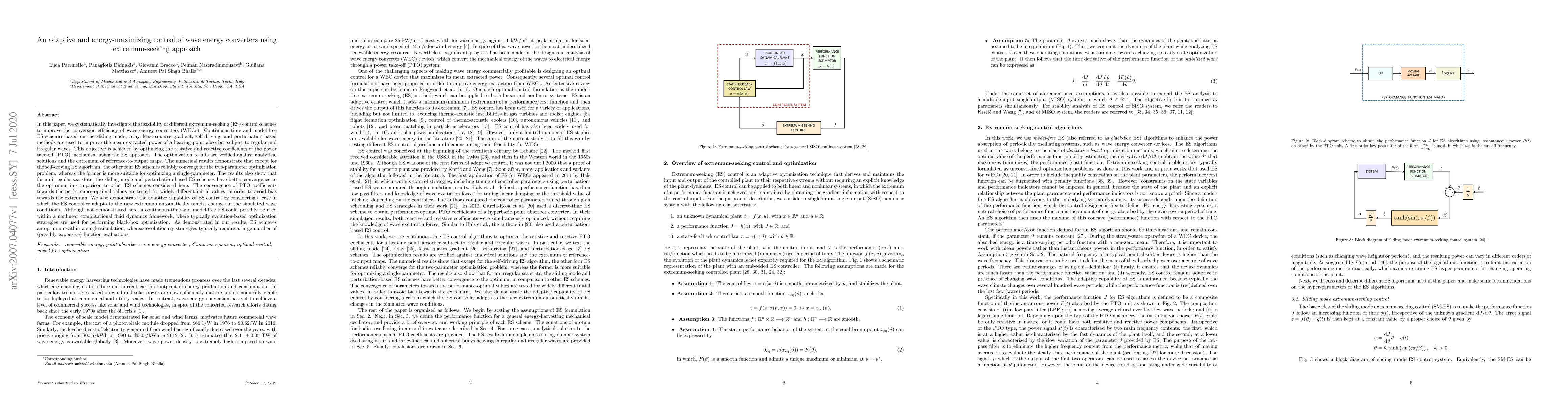 Researchers explored different adaptive control methods to optimize wave energy converters for better efficiency, finding that most schemes except one reliably converged to optimal values, with some performing better in irregular sea conditions.