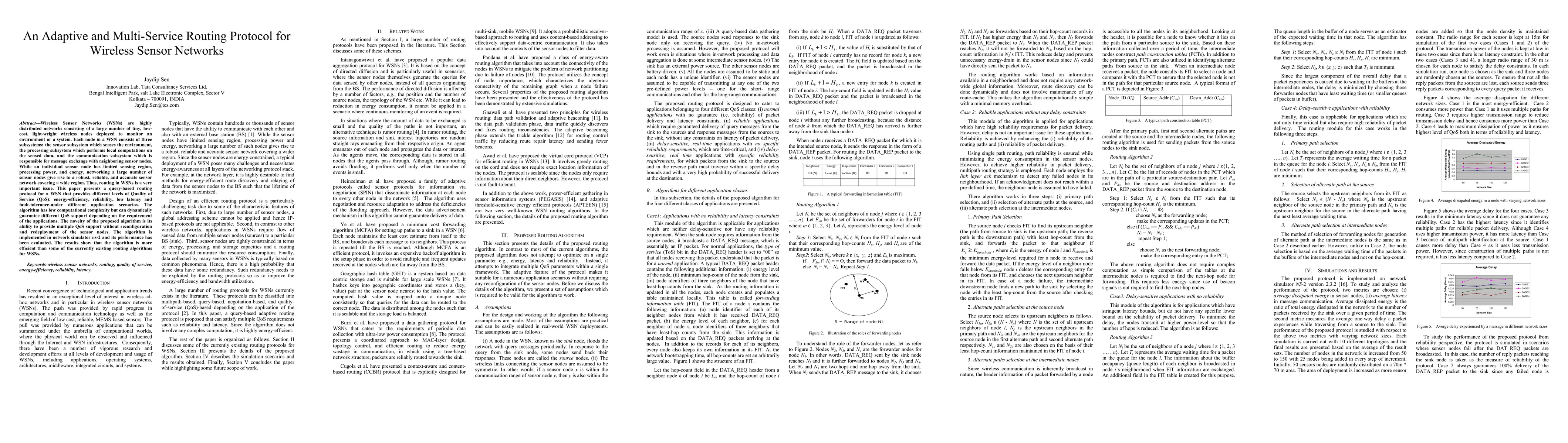 This paper presents an adaptive routing protocol for Wireless Sensor Networks (WSNs) that dynamically supports multiple Quality of Service (Qos) levels, including energy-efficiency and fault-tolerance, without requiring node reconfiguration. The protocol's performance, evaluated using ns-2, shows it to be more efficient than existing algorithms.