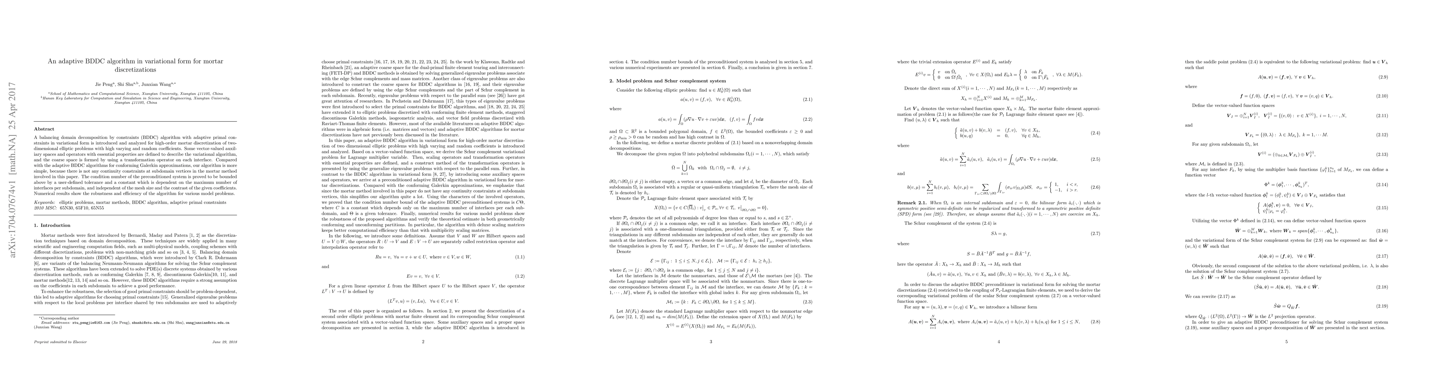 A balancing domain decomposition by constraints (BDDC) algorithm with adaptive primal constraints in variational form is introduced and analyzed for high-order mortar discretization of two-dimensional elliptic problems with high varying and random coefficients. Some vector-valued auxiliary spaces and operators with essential properties are defined to describe the variational algorithm, and the coarse space is formed by using a transformation operator on each interface. Compared with the adaptive BDDC algorithms for conforming Galerkin approximations, our algorithm is more simple, because there is not any continuity constraints at subdomain vertices in the mortar method involved in this paper. The condition number of the preconditioned system is proved to be bounded above by a user-defined tolerance and a constant which is dependent on the maximum number of interfaces per subdomain, and independent of the mesh size and the contrast of the given coefficients. Numerical results show the robustness and efficiency of the algorithm for various model problems.