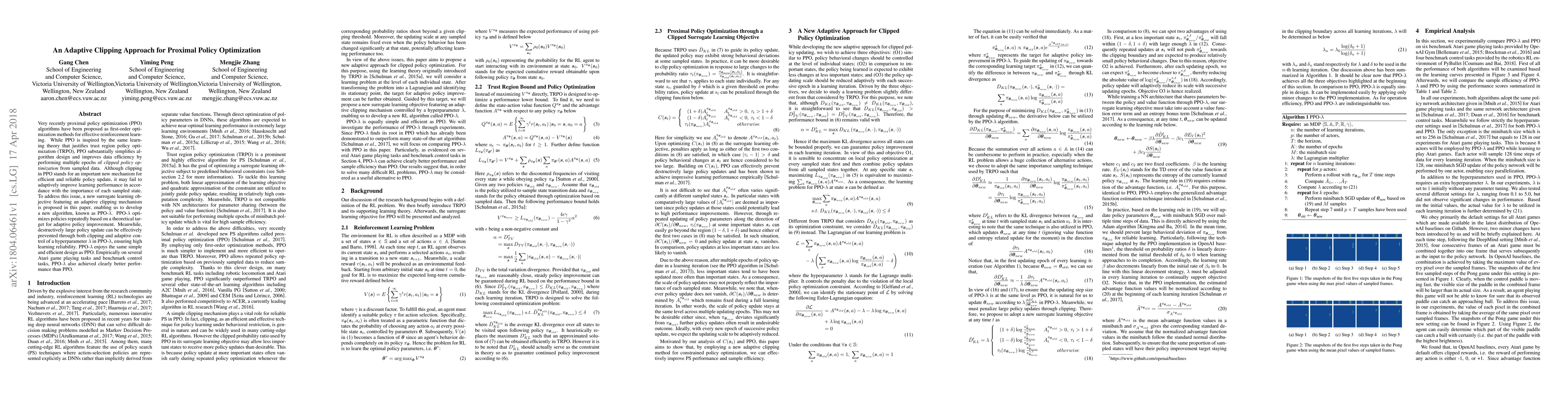 This paper proposes PPO-$\lambda$, an adaptive clipping approach for Proximal Policy Optimization (PPO) that enhances learning performance by incorporating an adaptive clipping mechanism. The new algorithm optimizes policies based on a theoretical target, preventing large policy updates while improving efficiency and reliability, and achieving better results on Atari and control tasks compared to standard PPO.