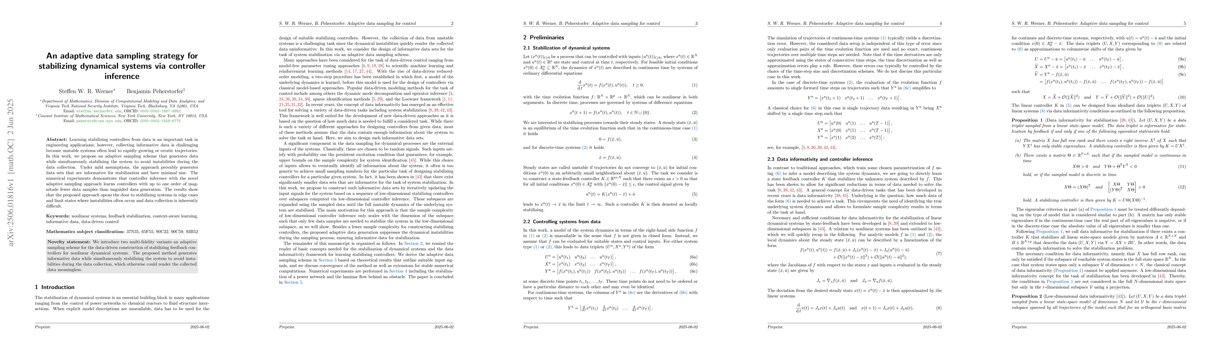 Researchers developed an adaptive data sampling strategy to stabilize unstable systems while collecting data for controller inference. This approach significantly reduces the number of data samples needed, making it possible to stabilize systems in edge cases where data collection is difficult.