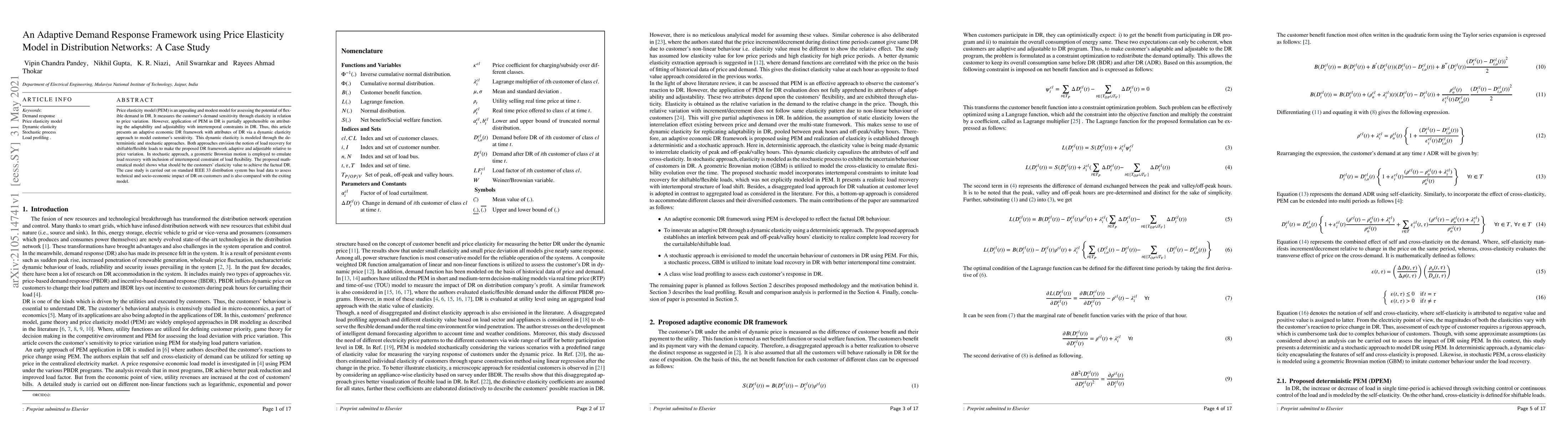 This paper proposes an adaptive demand response (DR) framework using a price elasticity model (PEM) to assess flexible demand sensitivity. The framework integrates deterministic and stochastic approaches to model customer elasticity and load recovery, demonstrating technical and socio-economic impacts through a case study on the IEEE 33 distribution system.