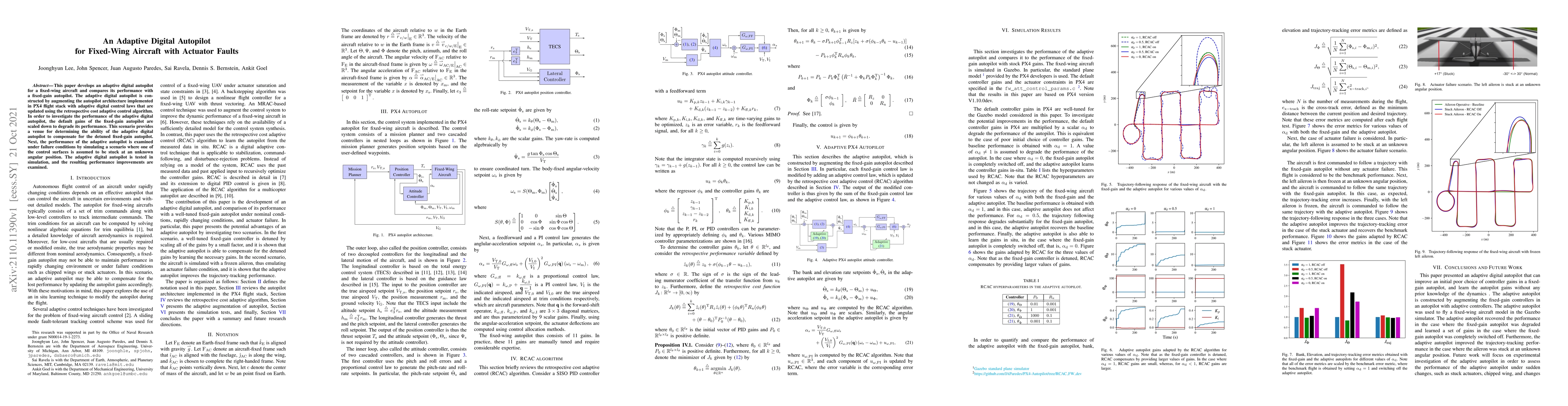This paper develops an adaptive digital autopilot for fixed-wing aircraft that uses adaptive control laws to improve performance over a fixed-gain autopilot, especially under actuator faults. Simulation results show significant performance improvements when compensating for degraded and faulty conditions.