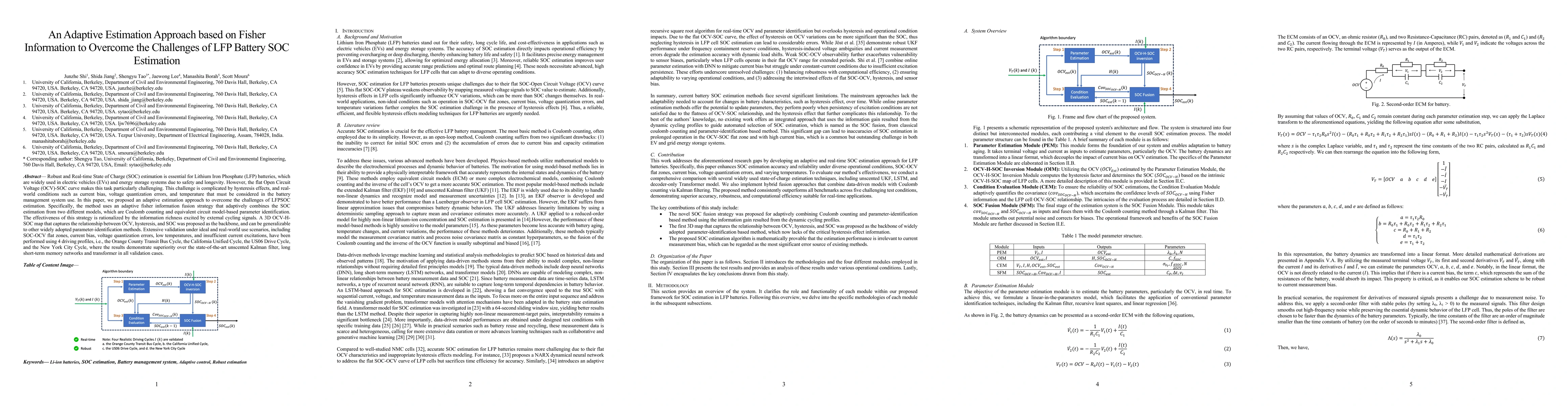Robust and Real-time State of Charge (SOC) estimation is essential for Lithium Iron Phosphate (LFP) batteries, which are widely used in electric vehicles (EVs) and energy storage systems due to safety and longevity. However, the flat Open Circuit Voltage (OCV)-SOC curve makes this task particularly challenging. This challenge is complicated by hysteresis effects, and real-world conditions such as current bias, voltage quantization errors, and temperature that must be considered in the battery management system use. In this paper, we proposed an adaptive estimation approach to overcome the challenges of LFPSOC estimation. Specifically, the method uses an adaptive fisher information fusion strategy that adaptively combines the SOC estimation from two different models, which are Coulomb counting and equivalent circuit model-based parameter identification. The effectiveness of this strategy is rationalized by the information richness excited by external cycling signals. A 3D OCV-H-SOC map that captures the relationship between OCV, hysteresis, and SOC was proposed as the backbone, and can be generalizable to other widely adopted parameter-identification methods. Extensive validation under ideal and real-world use scenarios, including SOC-OCV flat zones, current bias, voltage quantization errors, low temperatures, and insufficient current excitations, have been performed using 4 driving profiles, i.e., the Orange County Transit Bus Cycle, the California Unified Cycle, the US06 Drive Cycle, and the New York City Cycle, where the results demonstrate superiority over the state-of-the-art unscented Kalman filter, long short-term memory networks and transformer in all validation cases.